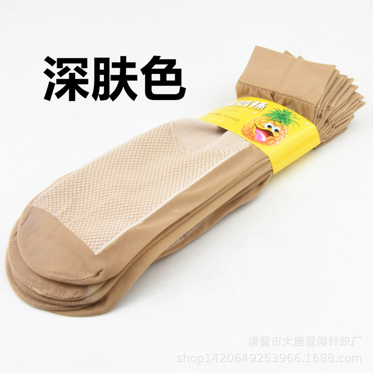 재고 면 바닥 스타킹 여자의 짧은 봄과 가을 얇은 후크 실크 내구성 마스크 스틸 와이어 검은 고기 색상 파인애플 양말 도매스토어 가기