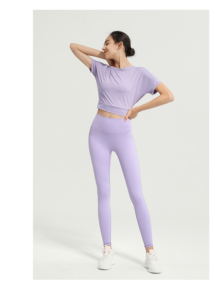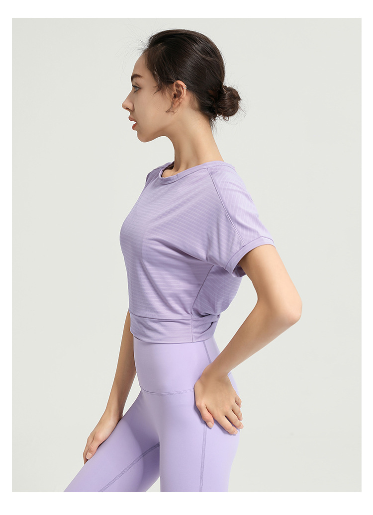 유럽과 미국 여름 피트니스 의류 느슨한 통기성 스포츠 티셔츠 여성용 러닝 요가 탑 자카드 반팔 신규