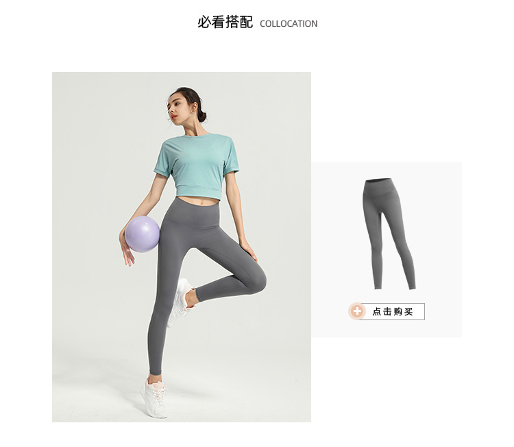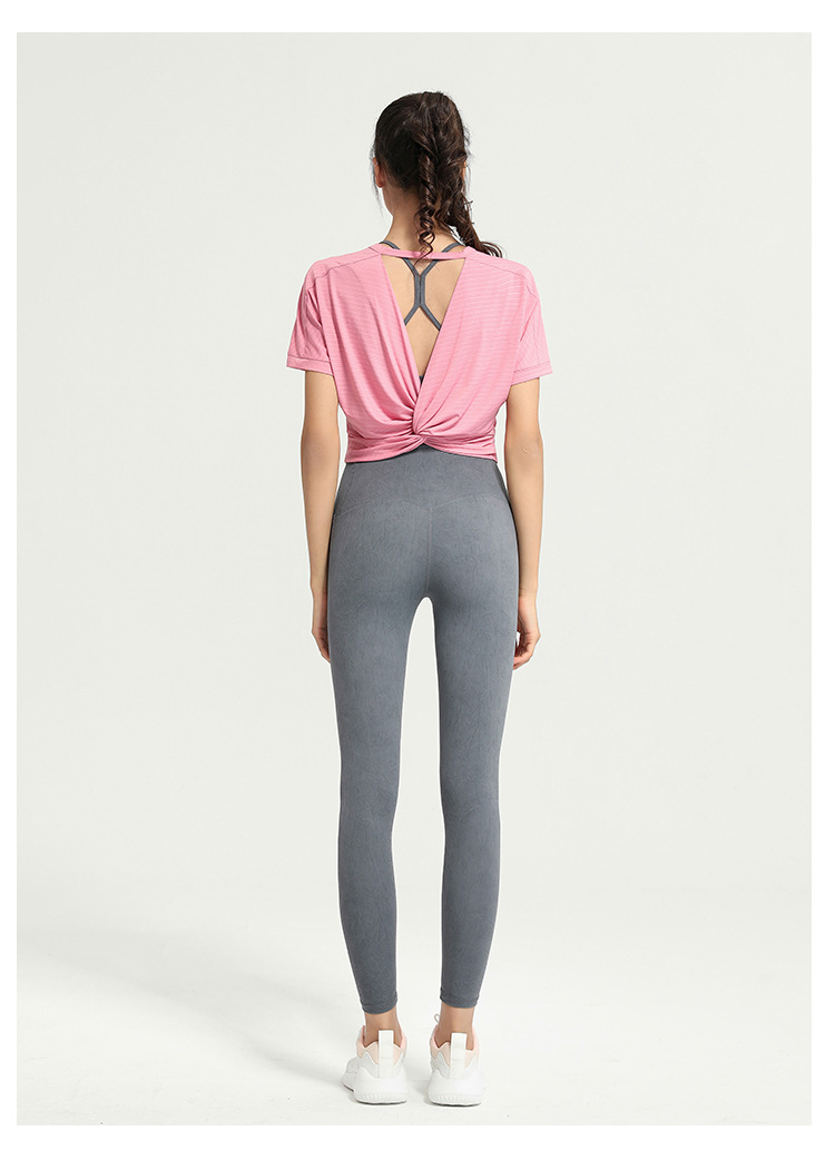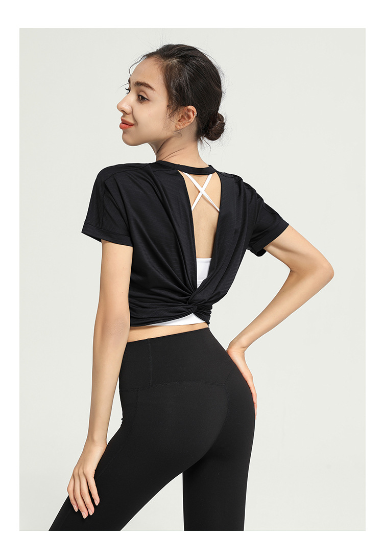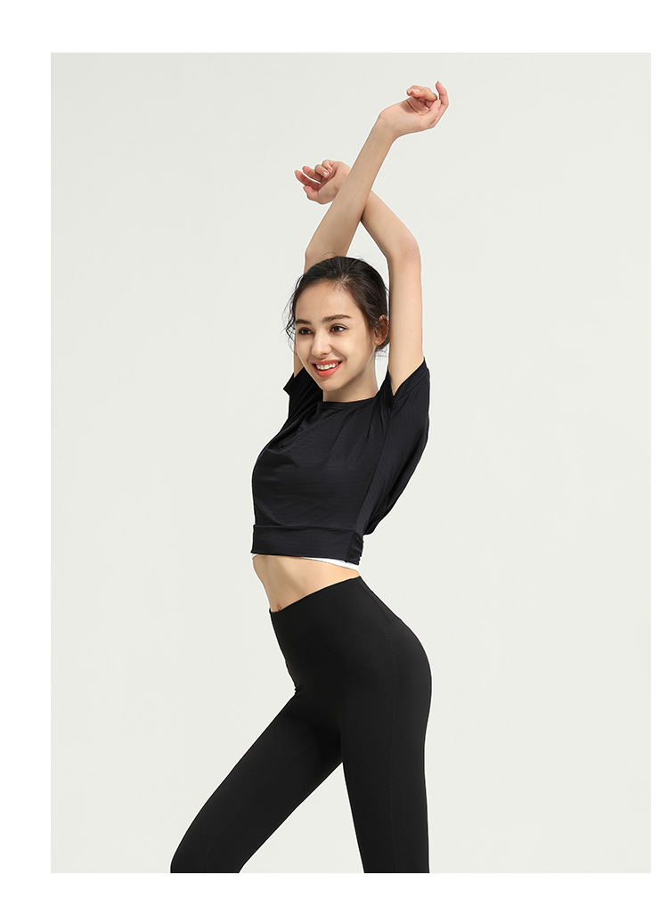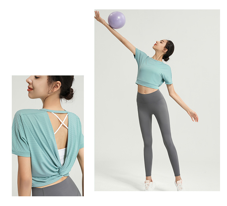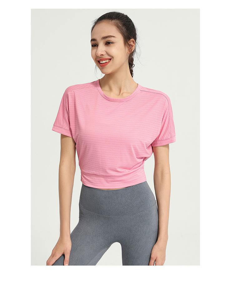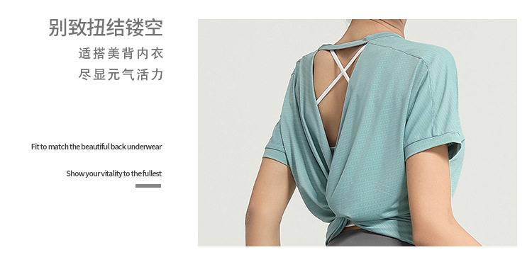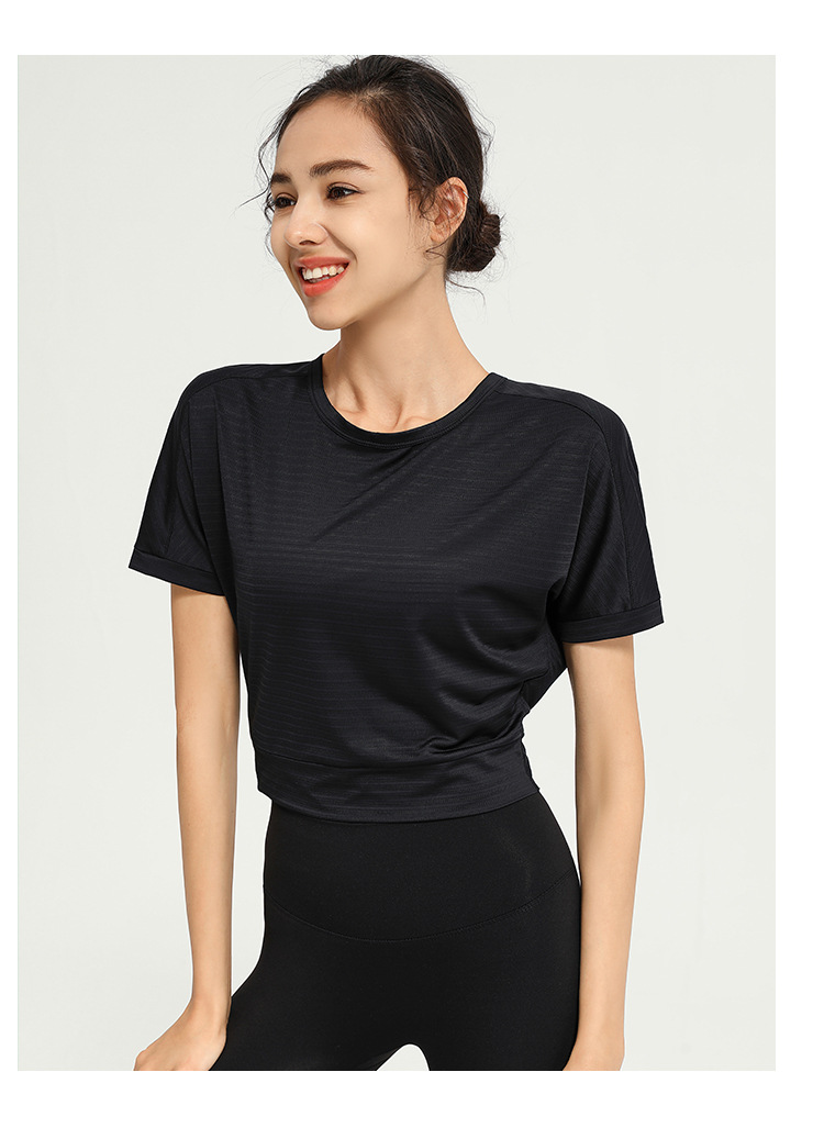 유럽과 미국 여름 피트니스 의류 느슨한 통기성 스포츠 티셔츠 여성용 러닝 요가 탑 자카드 반팔 신규스토어 가기