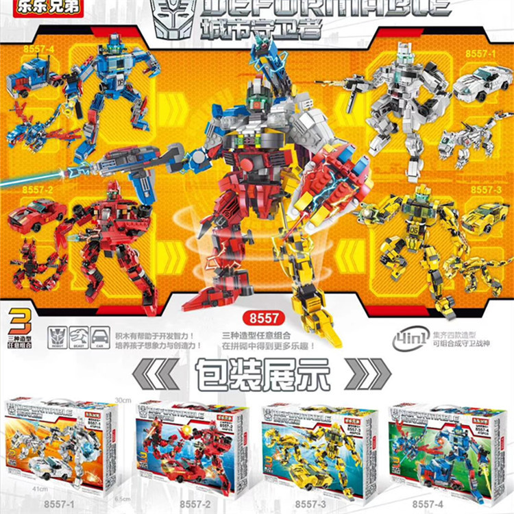 어린이 8557 조립 건물 블록 변형 로봇 자동차 4 조립 변형 로봇 및 자동차 장난감스토어 가기