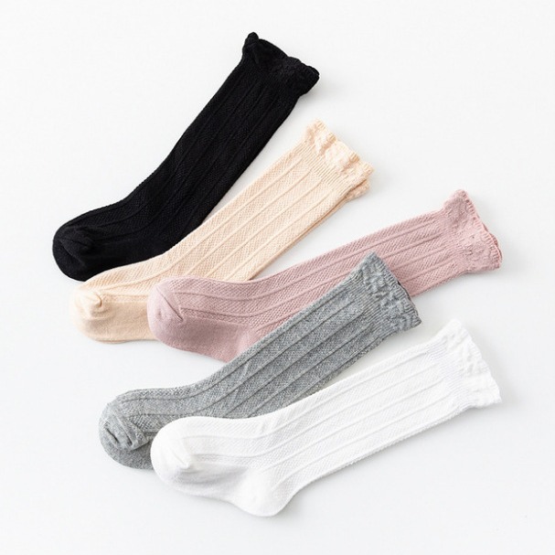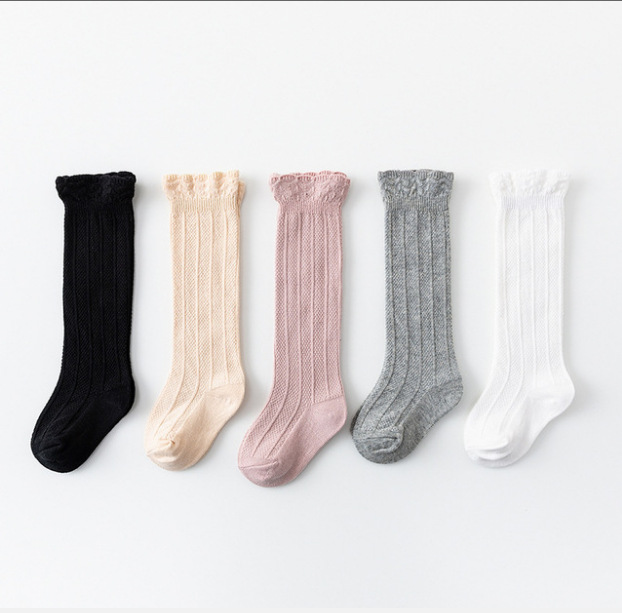 봄과 여름 아기 중간 튜브 양말 면 여성용 아기 양말 세로 이중 바늘 어린이 양말 아마존 레이스 스타킹