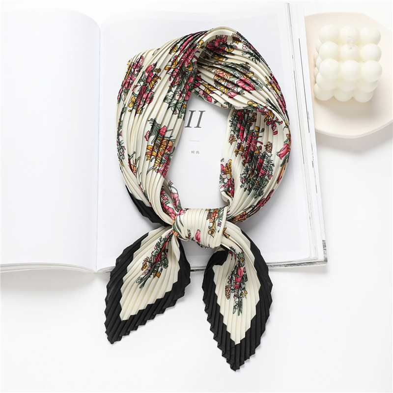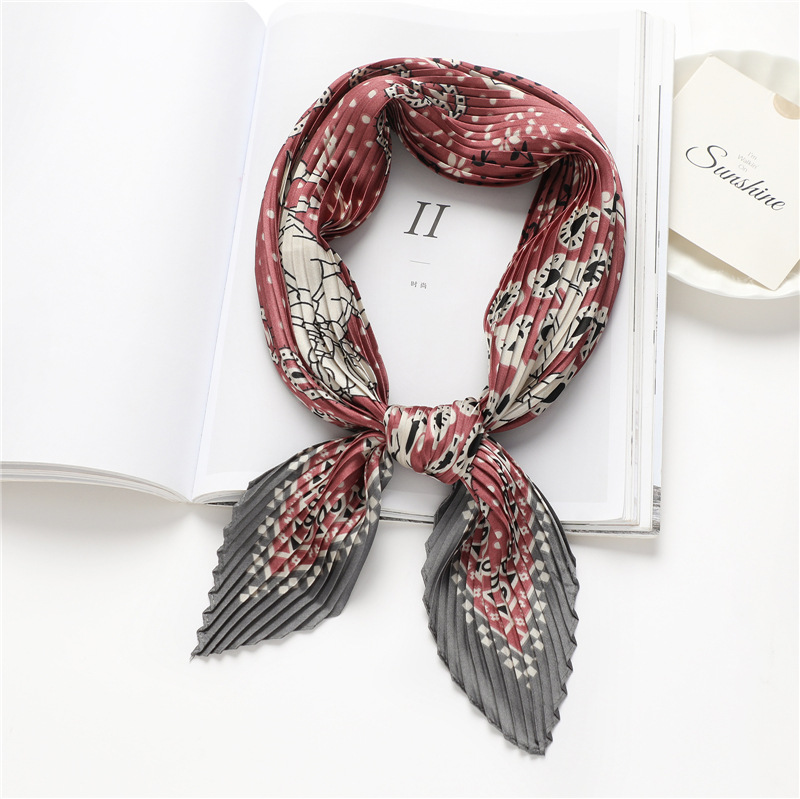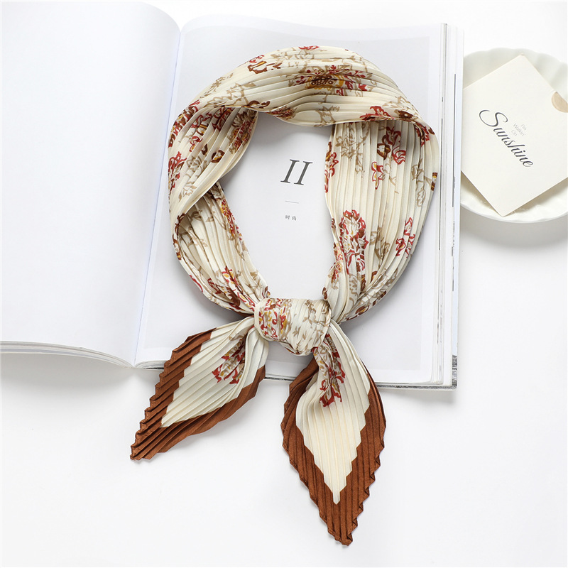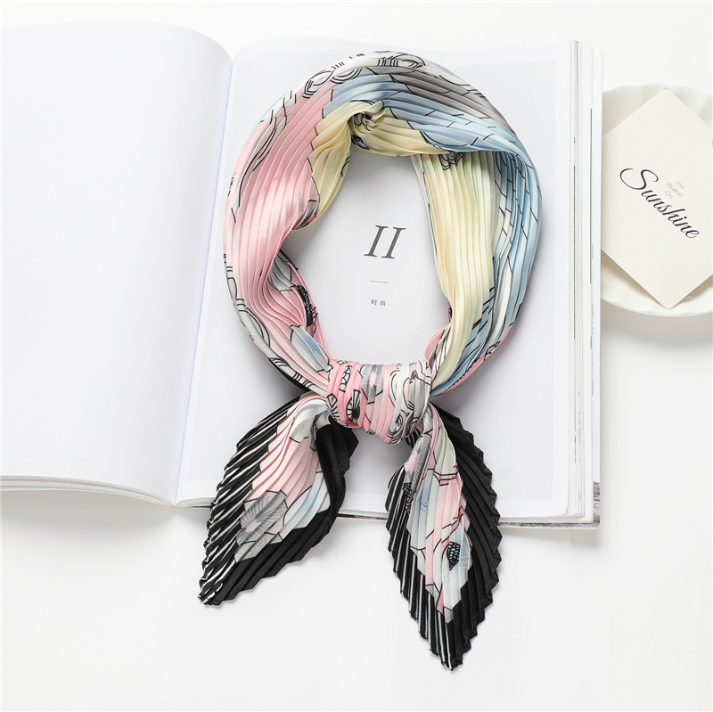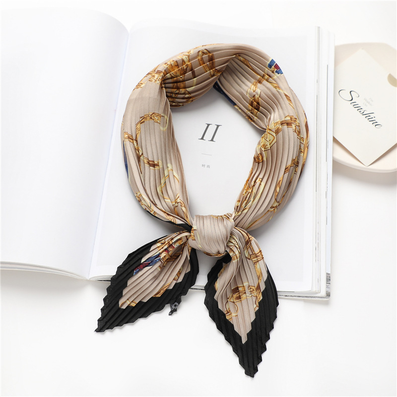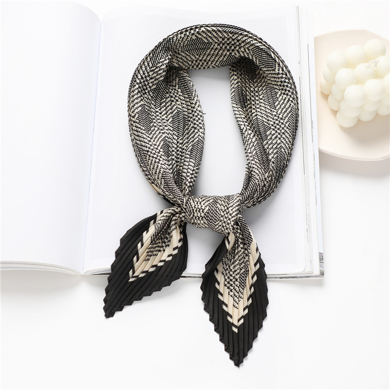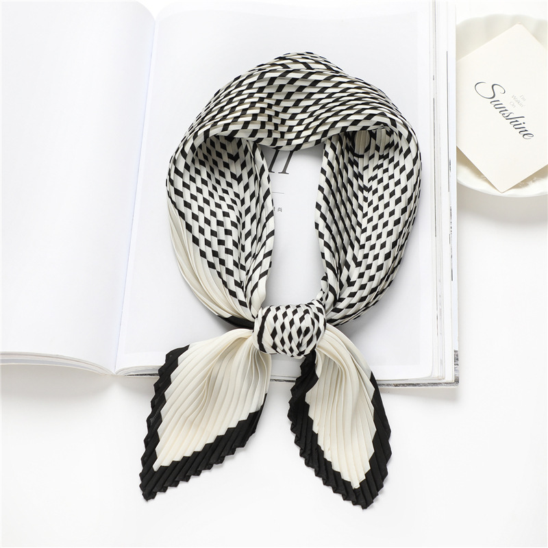 새로운 격자 무늬 실크 스카프 유럽과 미국 기질 스카프 모조 실크 봄과 여름 장식 스카프 전문 실크 스카프 구겨진 사각 스카프