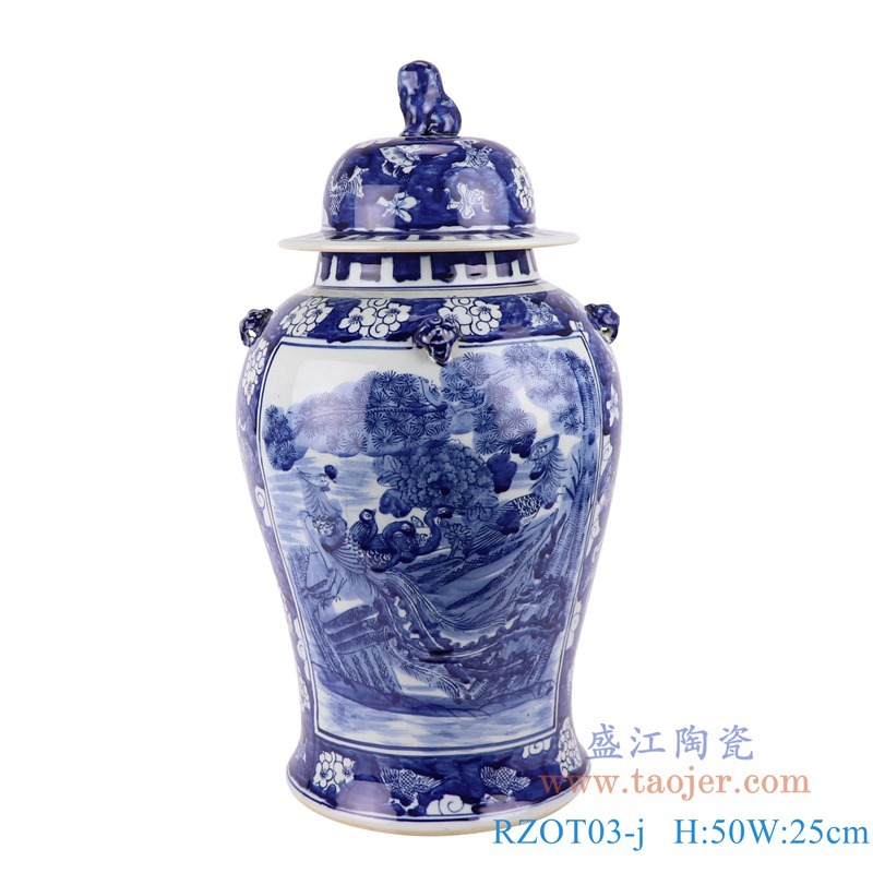 产 品 名 称:青花狮子头凤凰将军罐高50直径25
