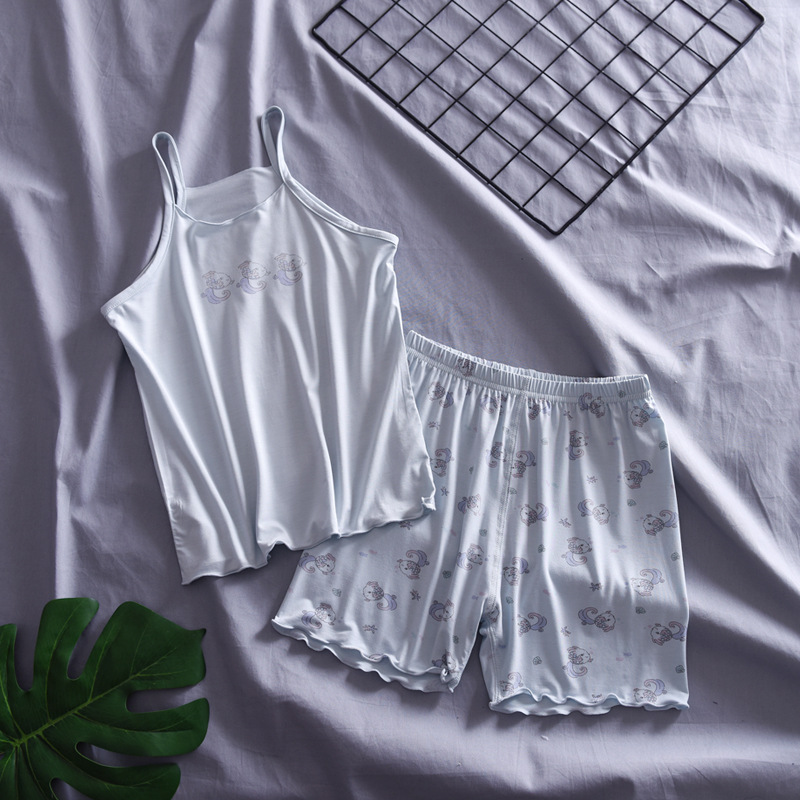 60 모달 어린이 가정 옷 세트 여름 얇은 공주 여아 에어컨 옷 아기 슬링 잠옷