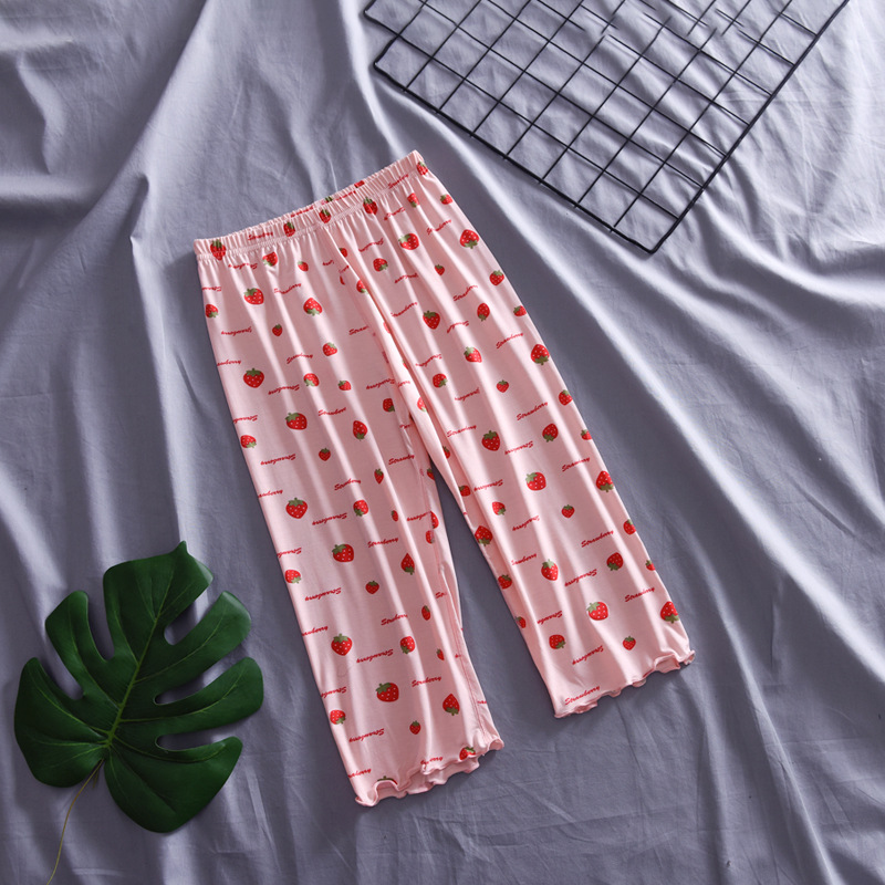60 모달 어린이 가정복 파자마 바지 여름 얇은 공주 여아 에어컨 옷 아기 카프리 바지 잠옷