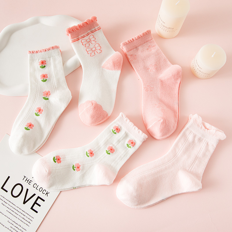 봄과 여름 얇은 메쉬 통기성 튜브 소녀 양말 패션 달콤한 활 작은 꽃 시리즈 어린이 양말 2