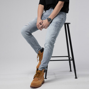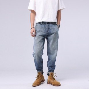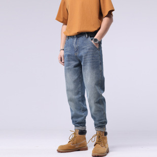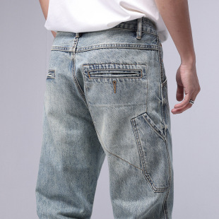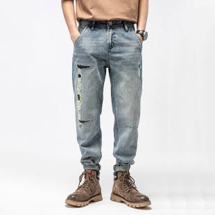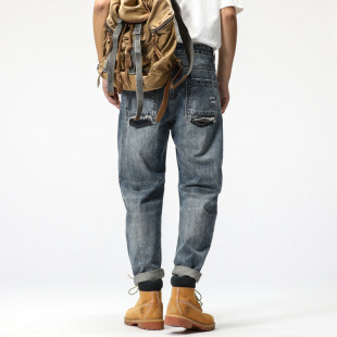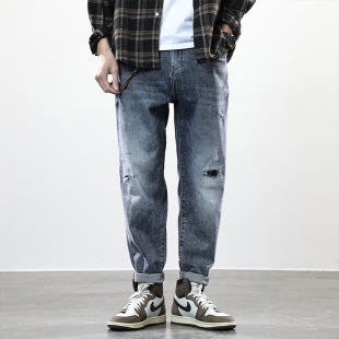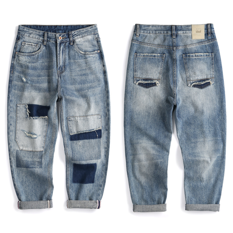 아메리칸 스타일 레트로 찢어진 청바지 소년 느슨한 스트레이트 캐주얼 바지 트렌디 브랜드 패치 크롭 토레 바지 플러스 사이즈 남성스토어 가기