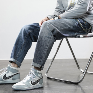 아메리칸 스타일 레트로 찢어진 청바지 소년 느슨한 스트레이트 캐주얼 바지 트렌디 브랜드 패치 크롭 토레 바지 플러스 사이즈 남성