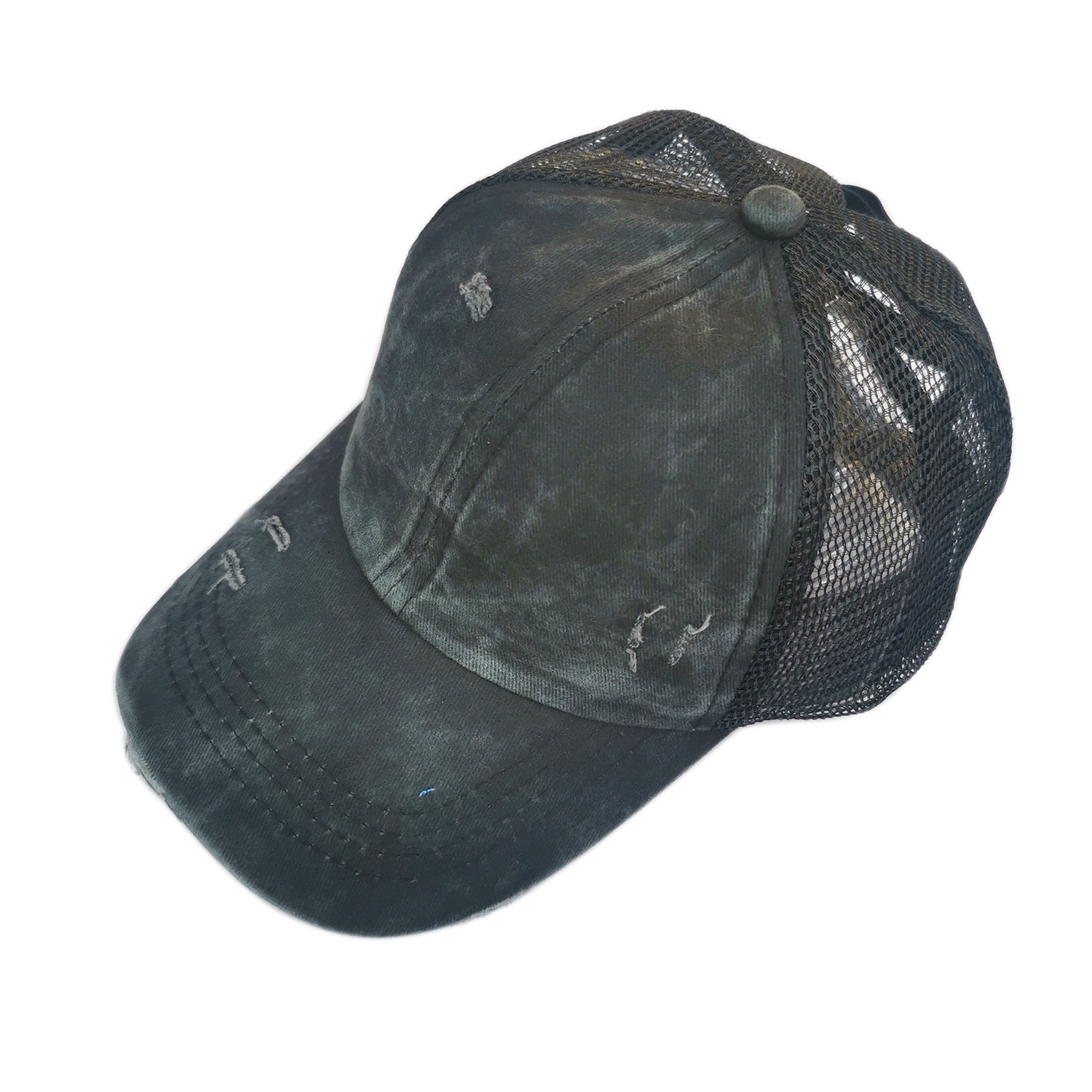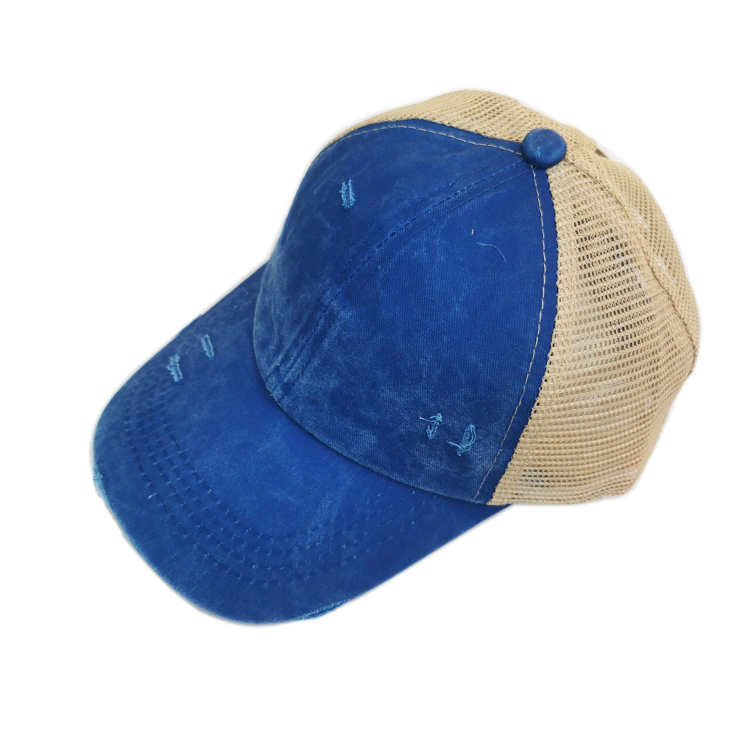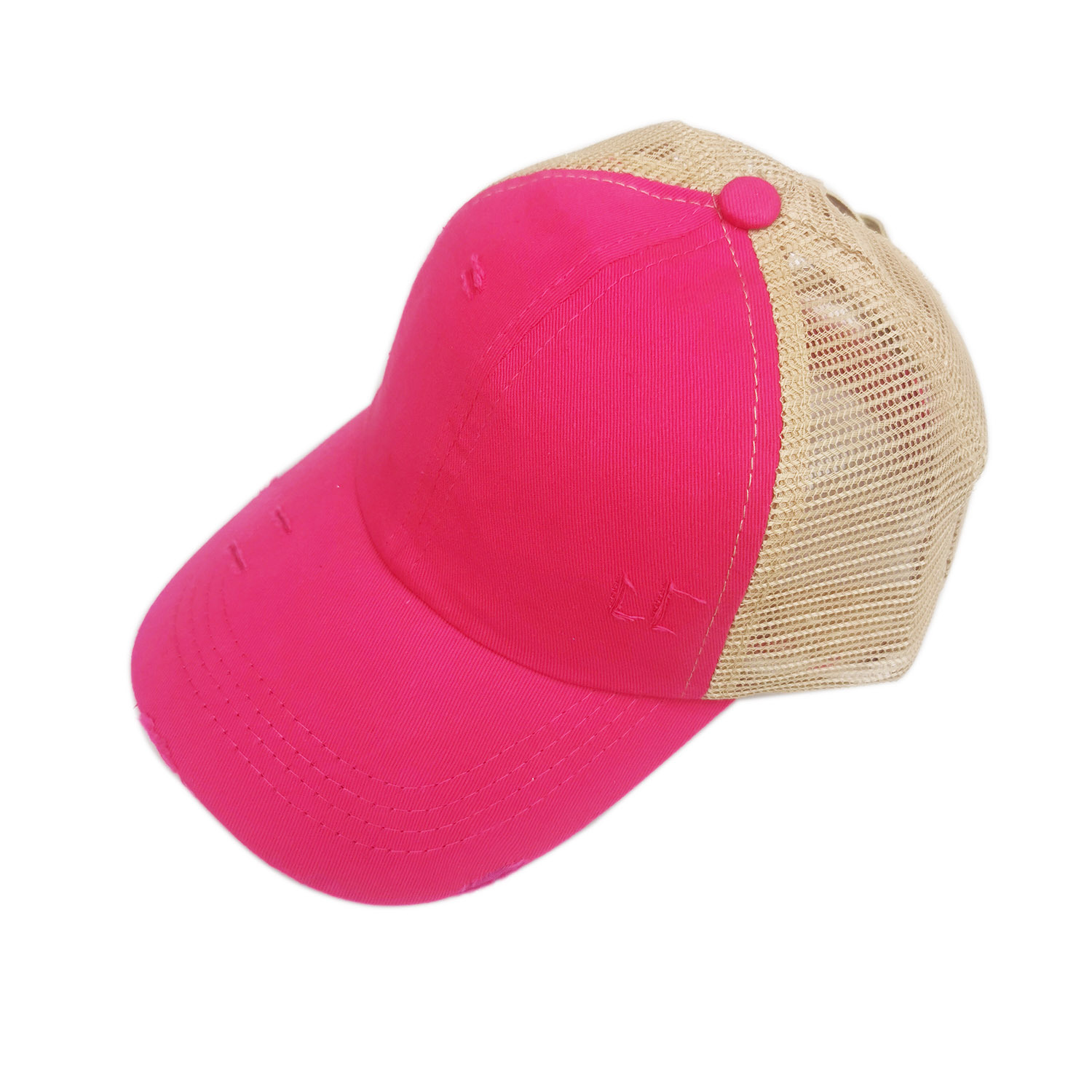 새로운 유럽과 미국 어린이 소녀 더블 크로스 워시 구멍 포니 테일 뱅 야구 모자 화려한 그라디언트 색상