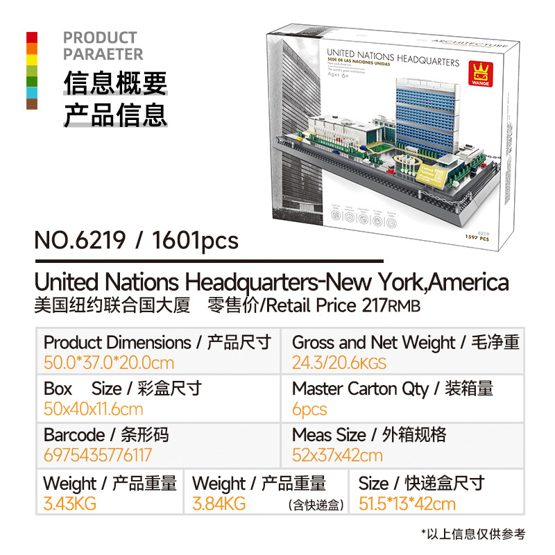Wanger United Nations Building in New York, USA 호환 소형 입자 빌딩 블록 어린이를위한 교육 테이블 장난감 조립 6219스토어 가기