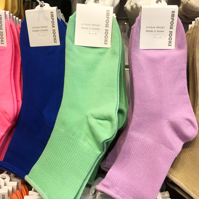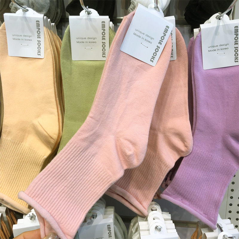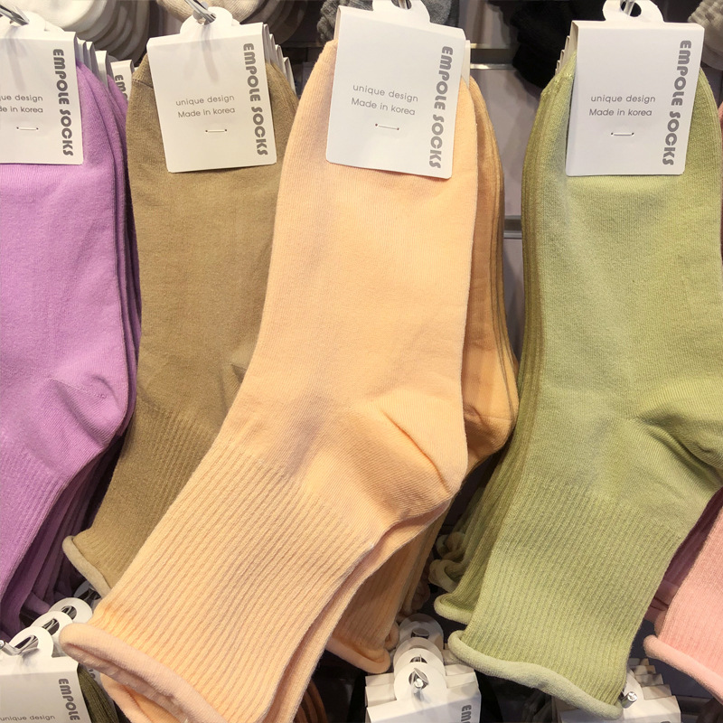 한국 이스트 게이트 EMPOLE 여름 얇은 양말 여성용 단색 통기성 컬면 양말 땀 흡수 스택 양말스토어 가기