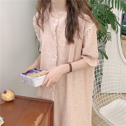 한국 인 숙녀 여름 한국 스타일 달콤한 느슨한 편안한 꽃 잠옷 레이스 잠옷 가정 의류 도매 여성