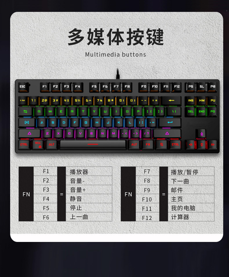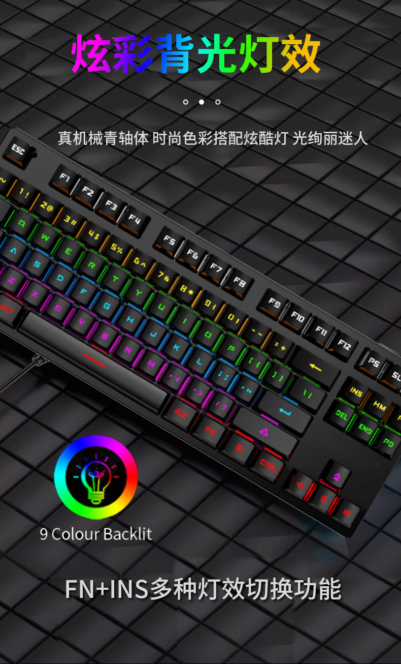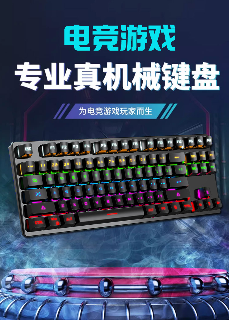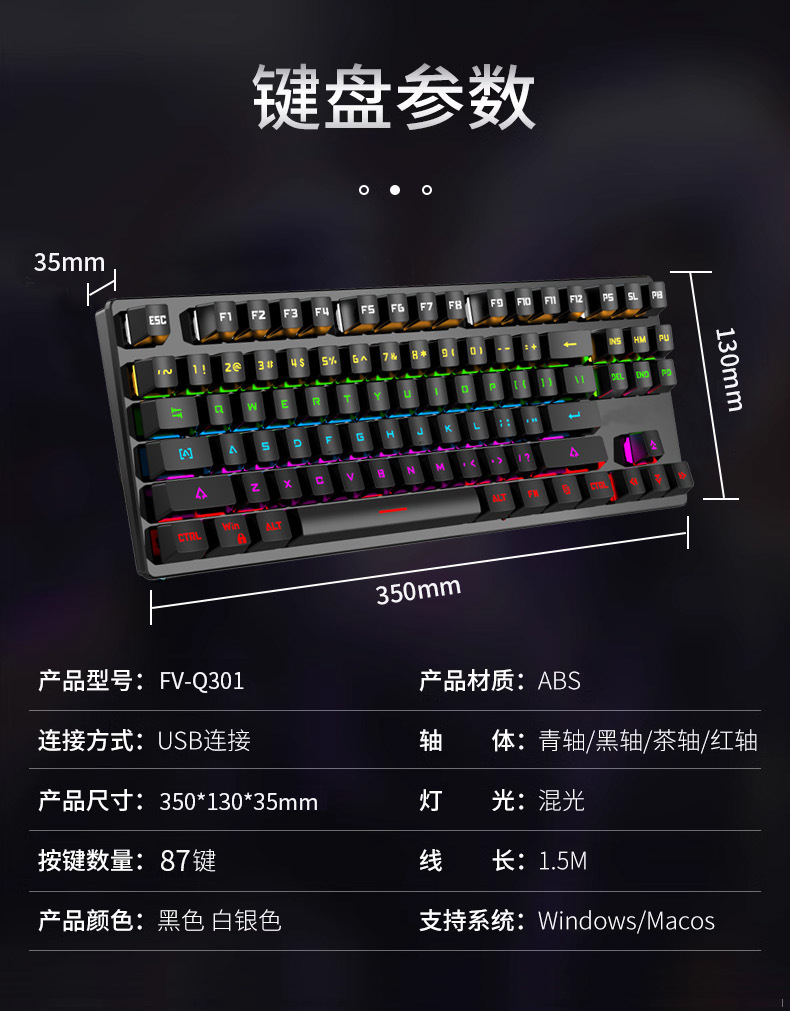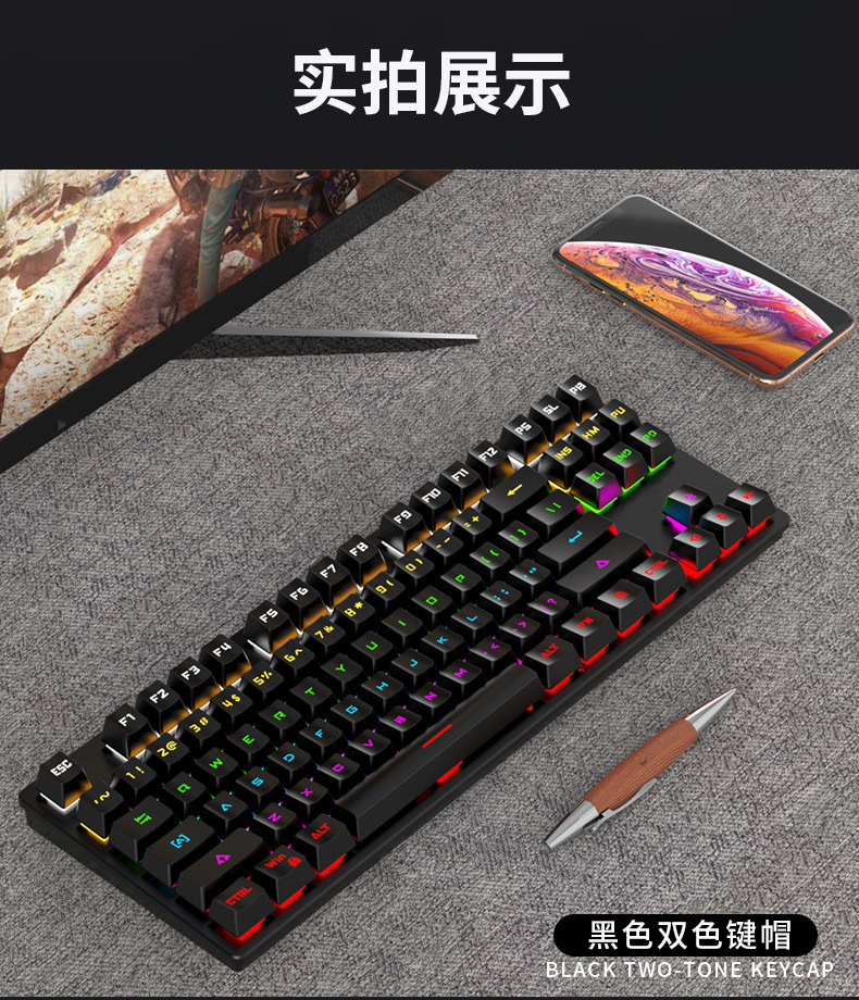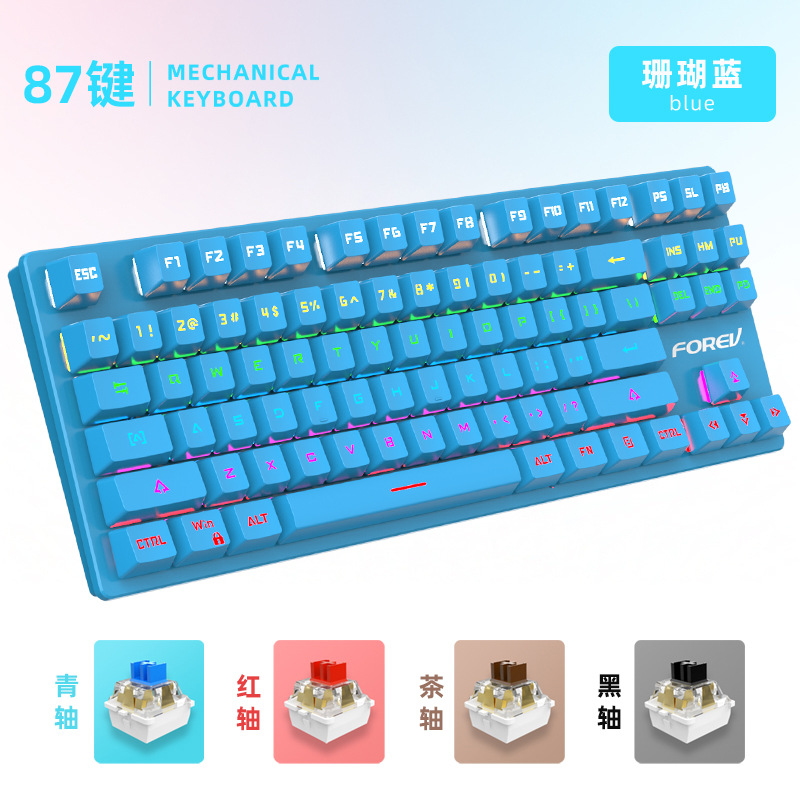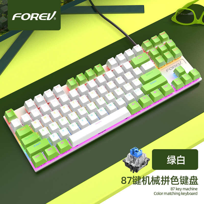 유선 87키 기계식 키보드 FVQ301 컬러 매칭 RGB 플러그인 녹색 축 게임 e-스포츠 OEM 3모드 기계식 키보드스토어 가기