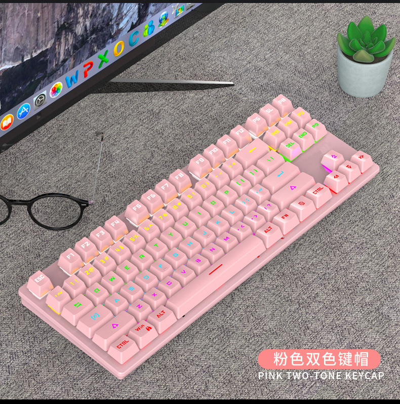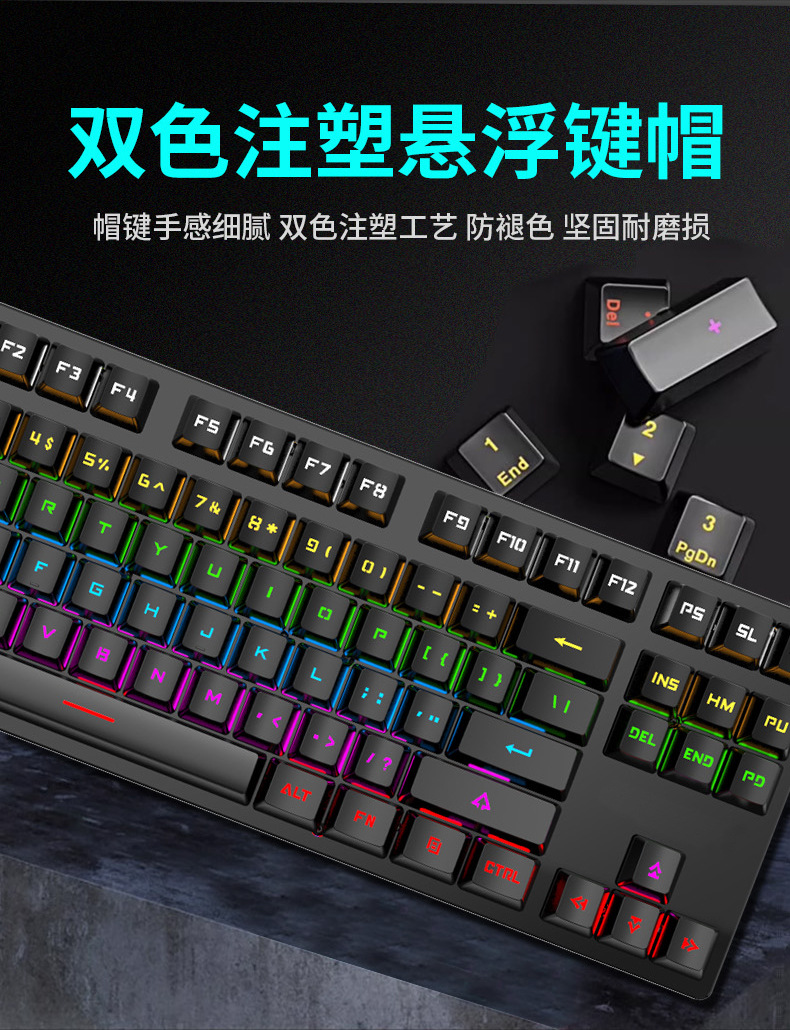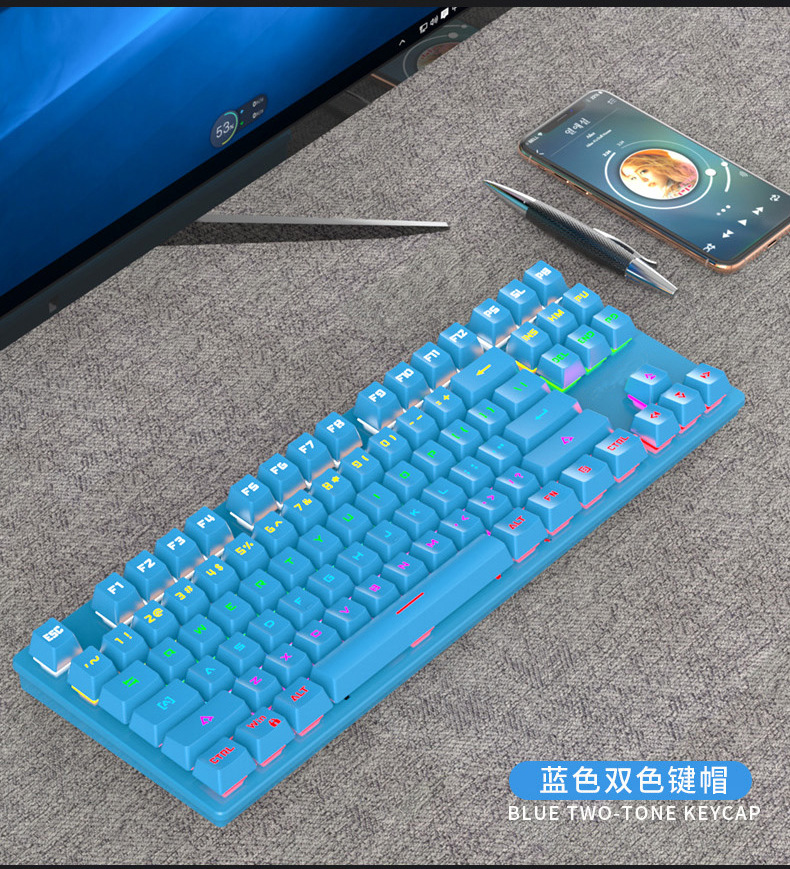 유선 87키 기계식 키보드 FVQ301 컬러 매칭 RGB 플러그인 녹색 축 게임 e-스포츠 OEM 3모드 기계식 키보드