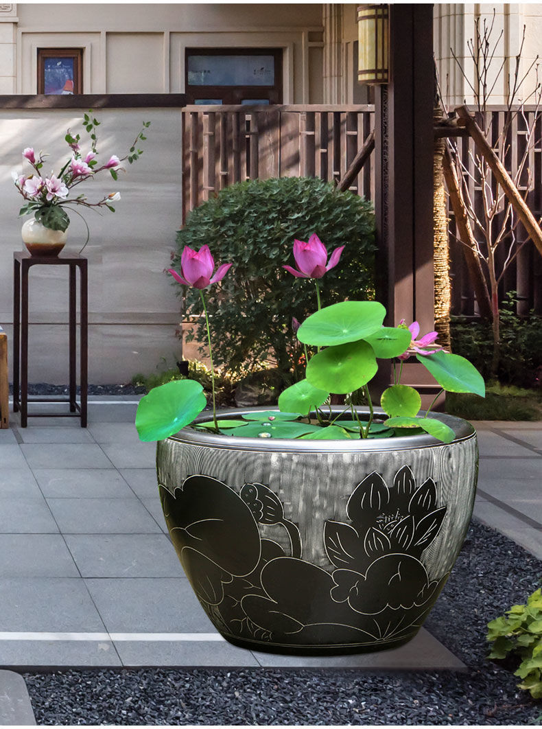 어류 문화 어항 레트로 안뜰의 고대 방법 대구 토기 옥외 연꽃 물 백합 분지 대형 탱크스토어 가기