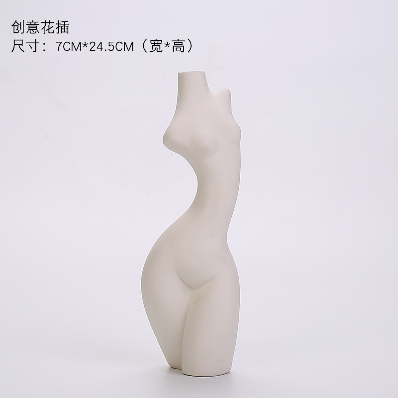 바디 모델링 아트 꽃병 북유럽 가정 장식 세라믹 꽃병 조각 흰색 꽃 도자기 홈 장식품