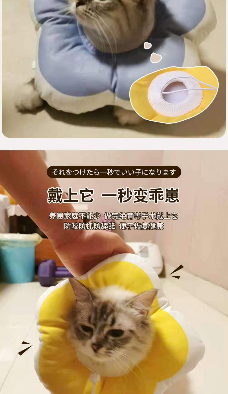 국경을 넘는 해바라기 고양이 엘리자베스 목걸이, 핥기 방지 방수 강아지 애완동물 용품 목걸이, 부드러운 장식용 목걸이 도매스토어 가기