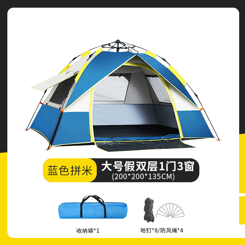 야외 캠핑 완전 자동 휴대용 접이식 캠핑 텐트 3-4인용 해변 텐트 빠른 설치 더블 캠핑 풀 세트