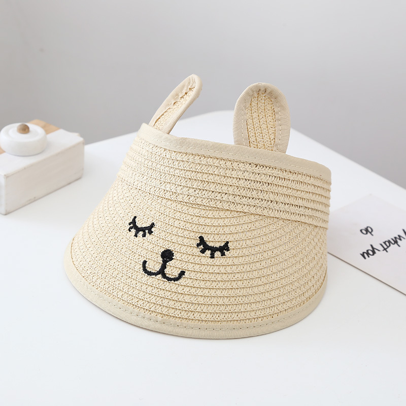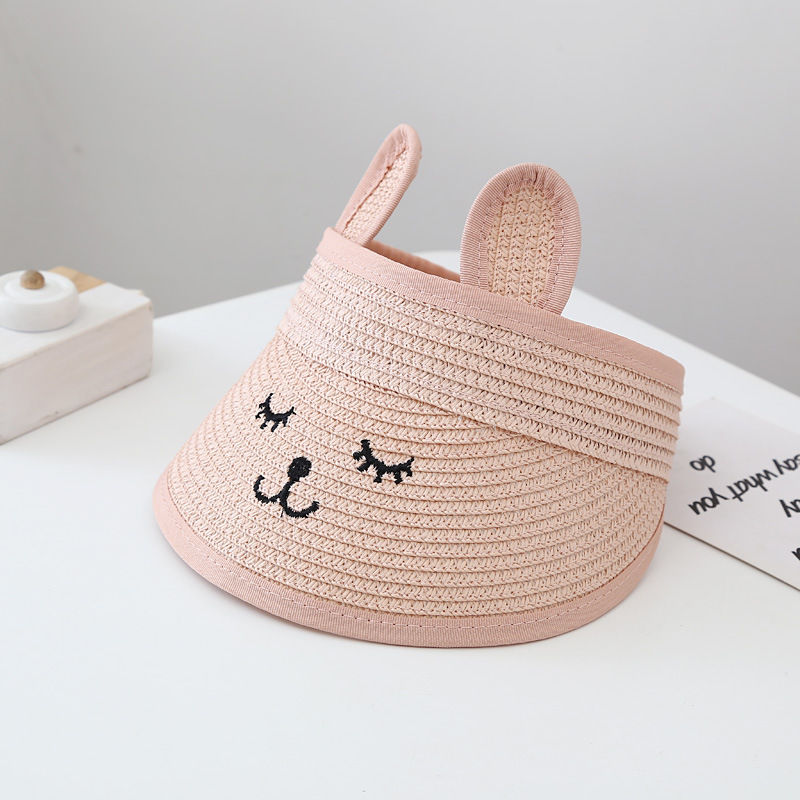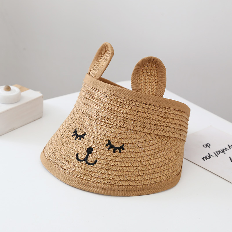 어린이 빈 탑 모자 아기 여름 차양 큰 챙 모자 손으로 짠 밀짚 모자 소년과 소녀를위한 귀여운 무표정 모자스토어 가기