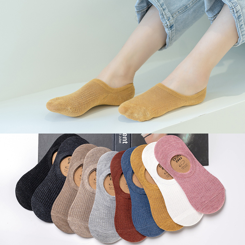 양말 여름 새로운 단색 가벼운 입 보이지 않는 양말 면 실리콘 슬레이트 보트 양말 여성 도매 양말