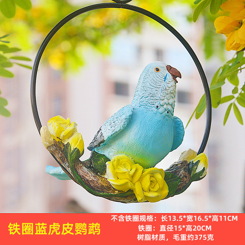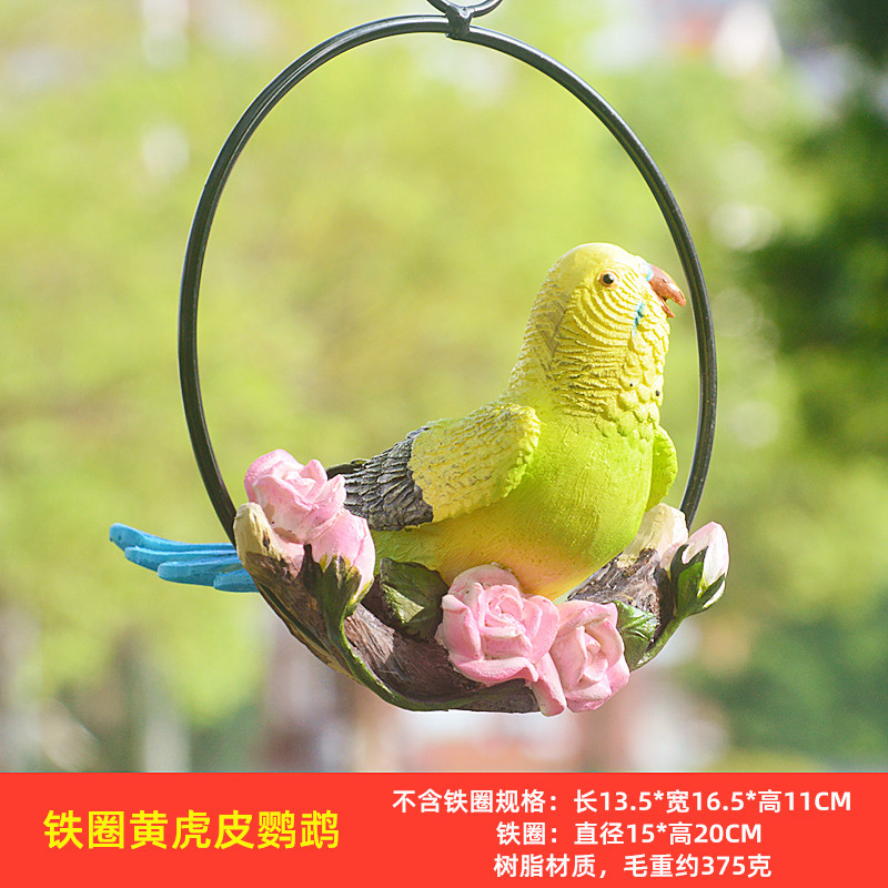 국경 간 시뮬레이션 새 모형 수지 공예 철 링 앵무새 펜던트 정원 안뜰 나무 펜던트 원예스토어 가기