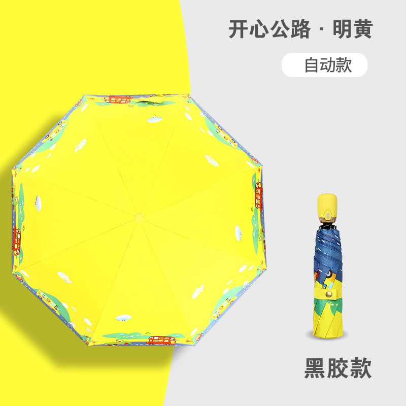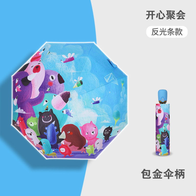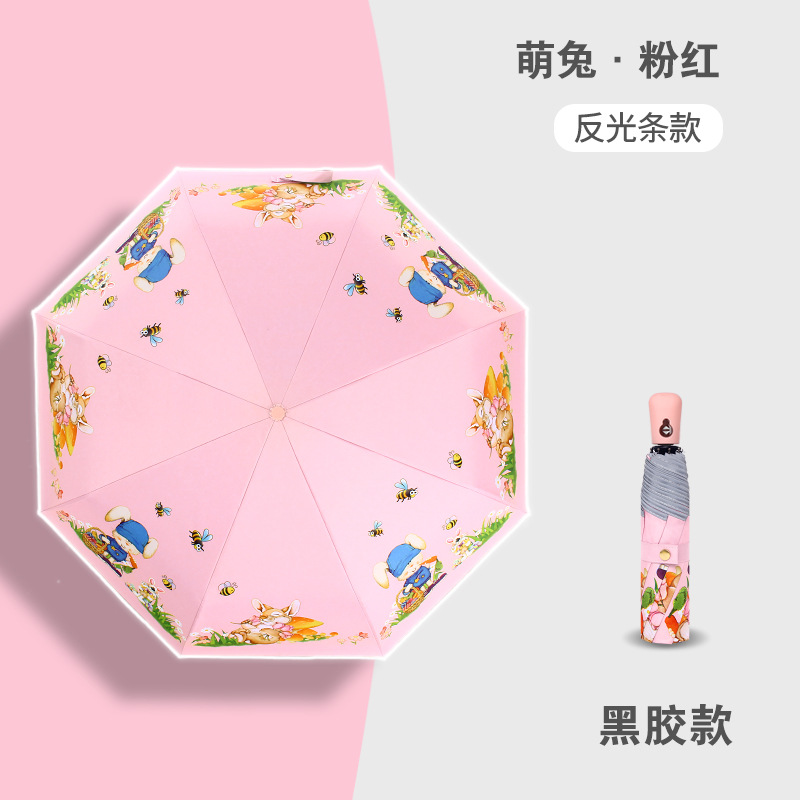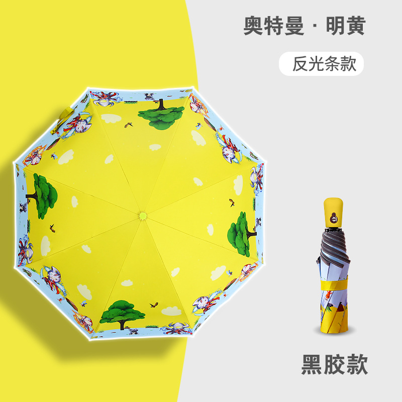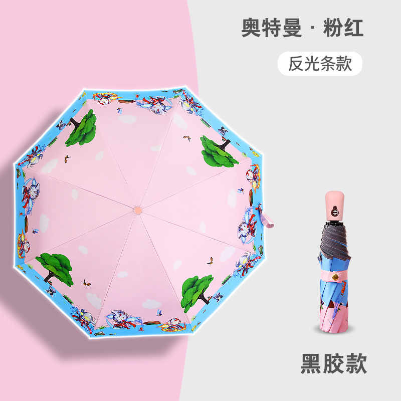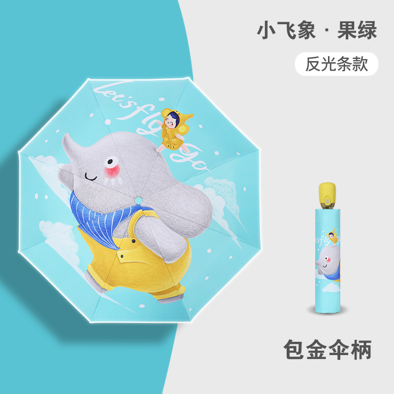 만화 접이식 완전 자동 어린이 우산, 초등학생용 비닐 어린이 우산, 양산, 반사 안전 반사 스트립