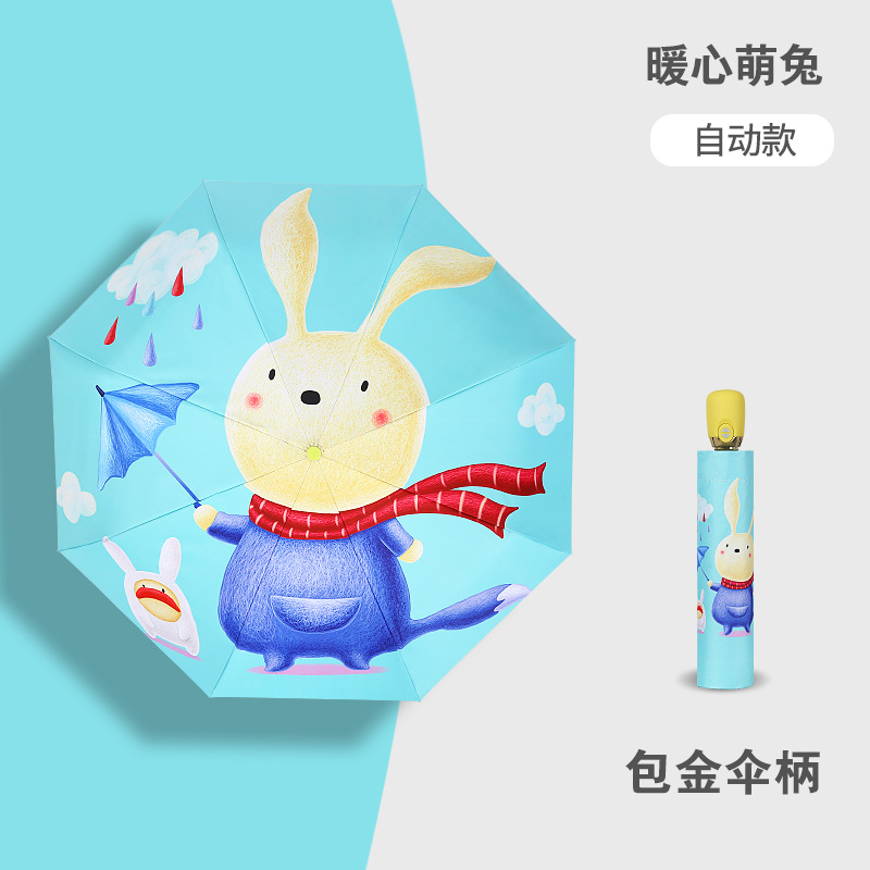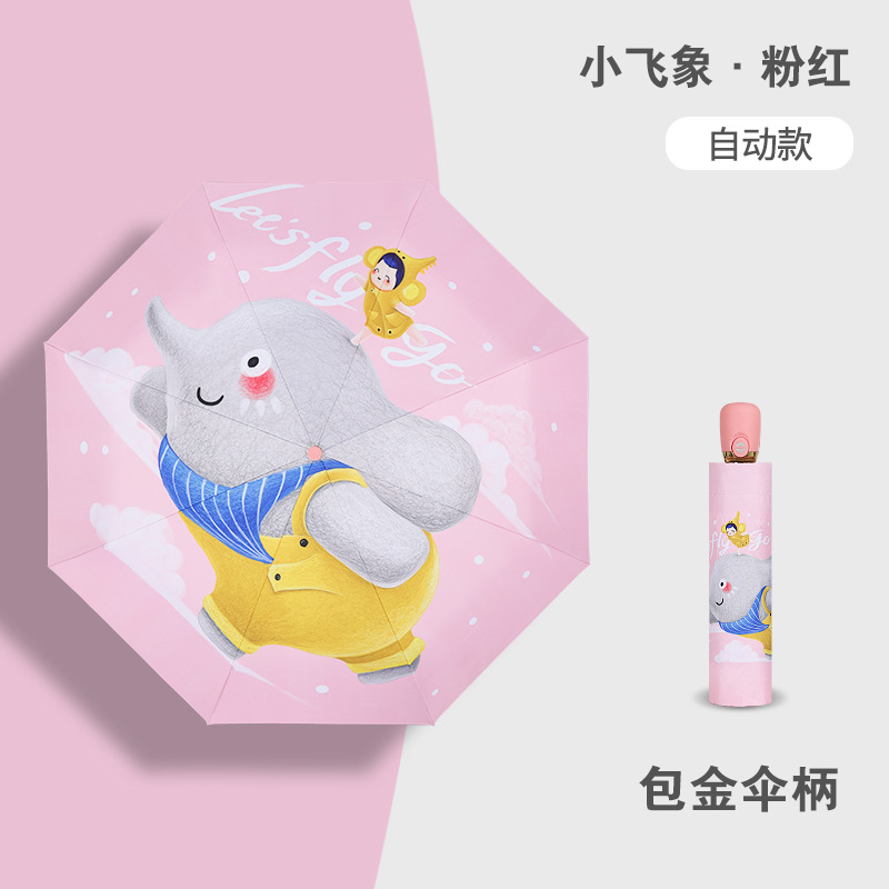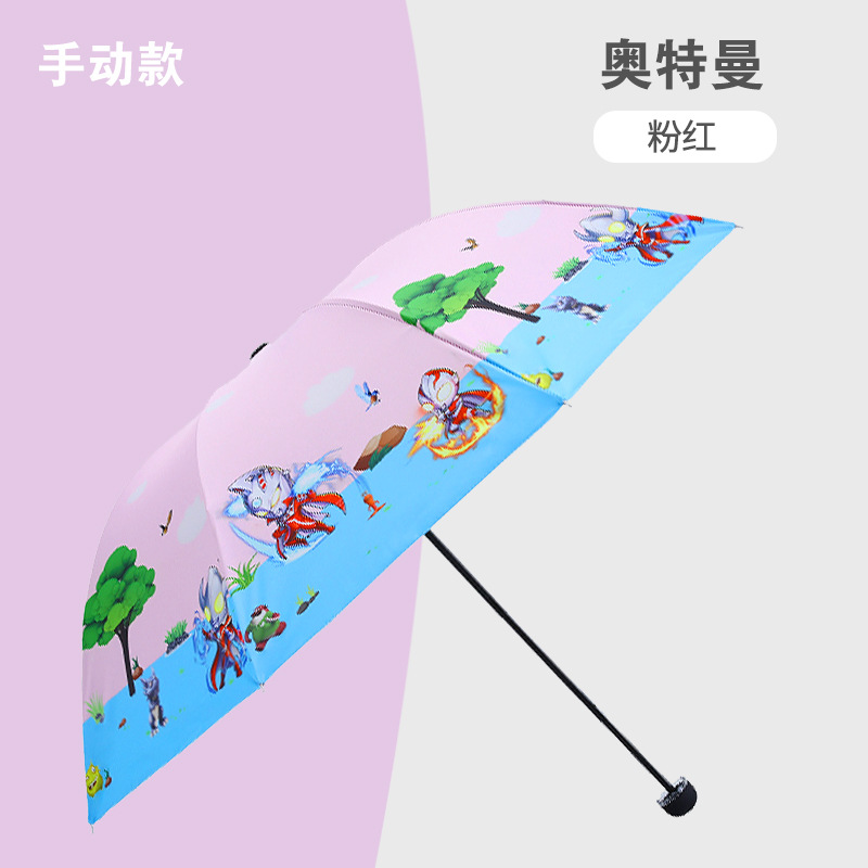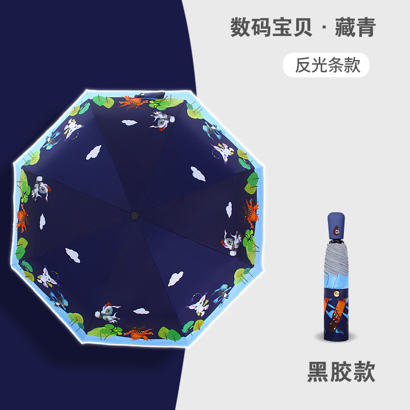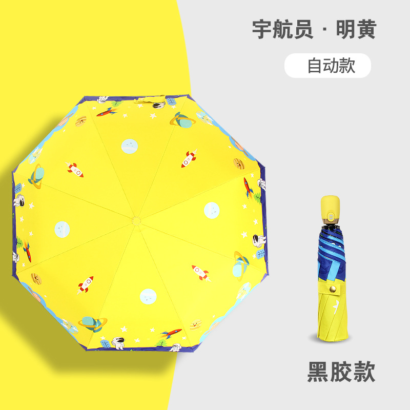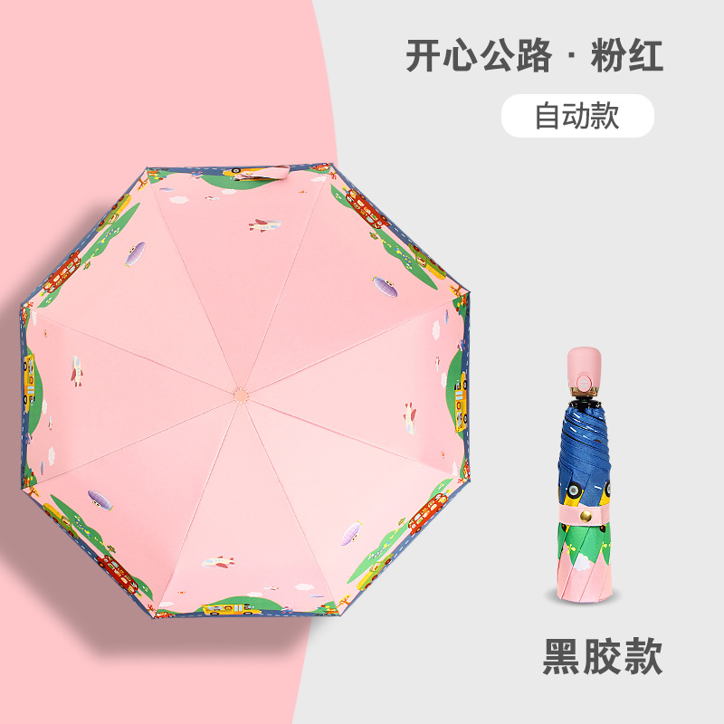 만화 접이식 완전 자동 어린이 우산, 초등학생용 비닐 어린이 우산, 양산, 반사 안전 반사 스트립