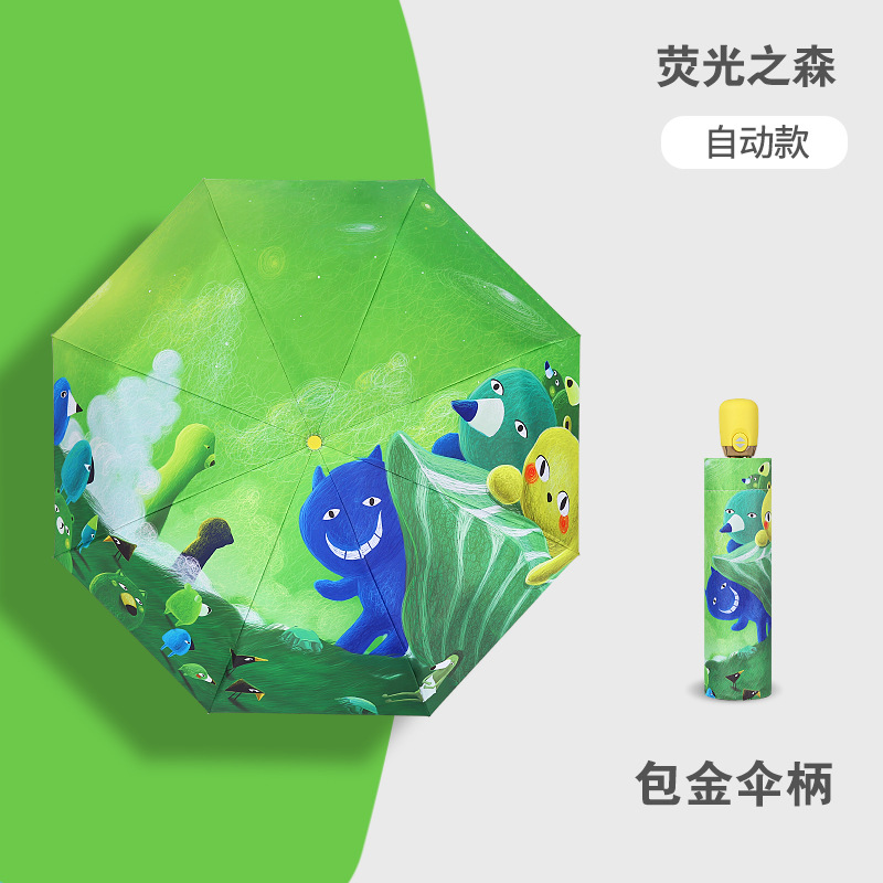 만화 접이식 완전 자동 어린이 우산, 초등학생용 비닐 어린이 우산, 양산, 반사 안전 반사 스트립스토어 가기