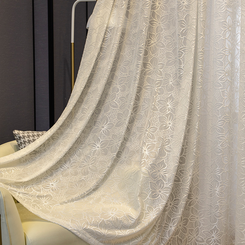 바이샤 윈도우 스크린 커튼 벚꽃 릴리프 거즈 커튼 거실 침실 발코니 국경 완성 광 투과 조커 공장 도매