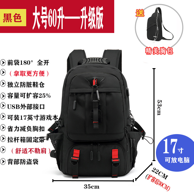 • 업그레이드 버전-60 리터 [퓨어 블랙]-권장 높이 175cm 이상 [신발 창고 포함]-가슴 가방