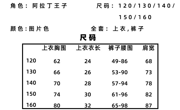 할로윈 영화 알라딘 매직 램프 코스프레 의상 알라딘 프린스 코스 성인 어린이 공연 의상