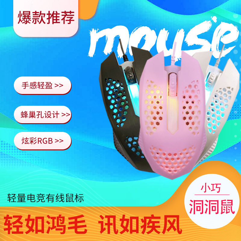WXG 선물 마우스 발광 경량 구멍 마우스 컴퓨터 게임 사무실 마우스 e 스포츠 USB 유선 마우스