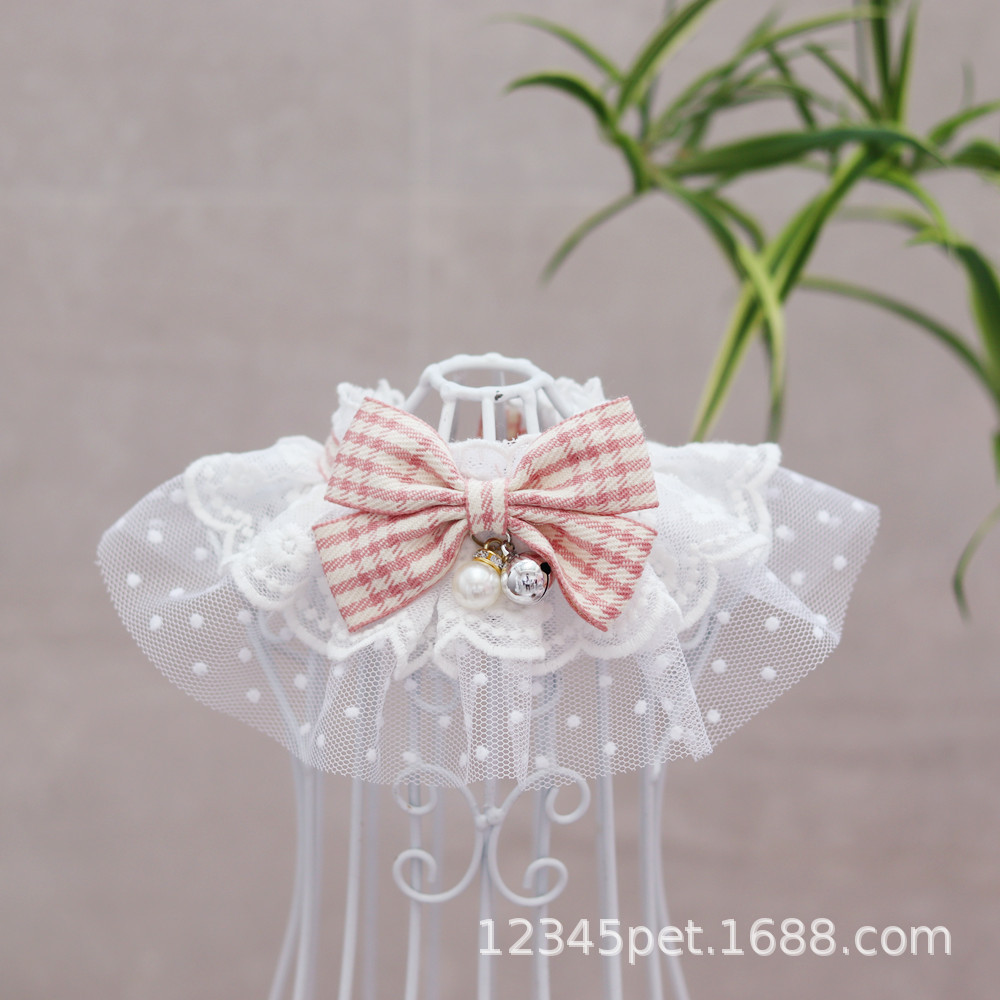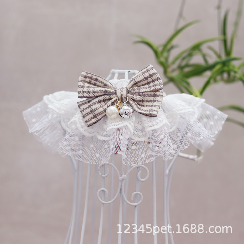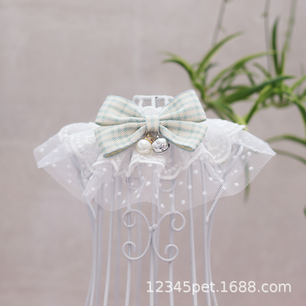 여름 애완 동물 레이스 턱받이 애완 동물 목걸이 고양이 개 벨 넥 링 애완 동물 보석 얇은 명주 그물 턱받이