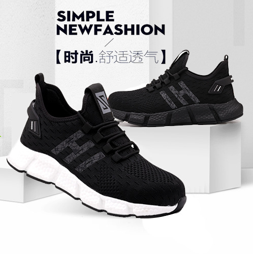 여름 통기성 플라이 짠 캐주얼 운동화 플러스 사이즈 남성 신발 스매시 방지 펑크 방지 야광 노동 보호 신발 도매스토어 가기
