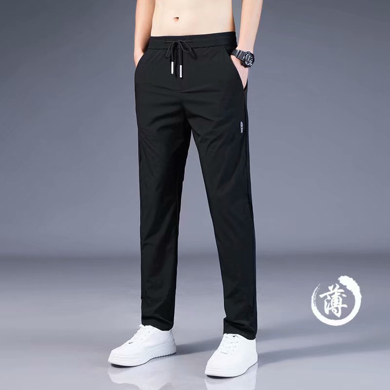 아이스 실크 바지 남성용 느슨한 통기성 스트레이트 캐주얼 바지 여름 얇은 바지 스트레치 청소년 남성 스포츠 바지