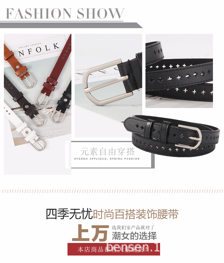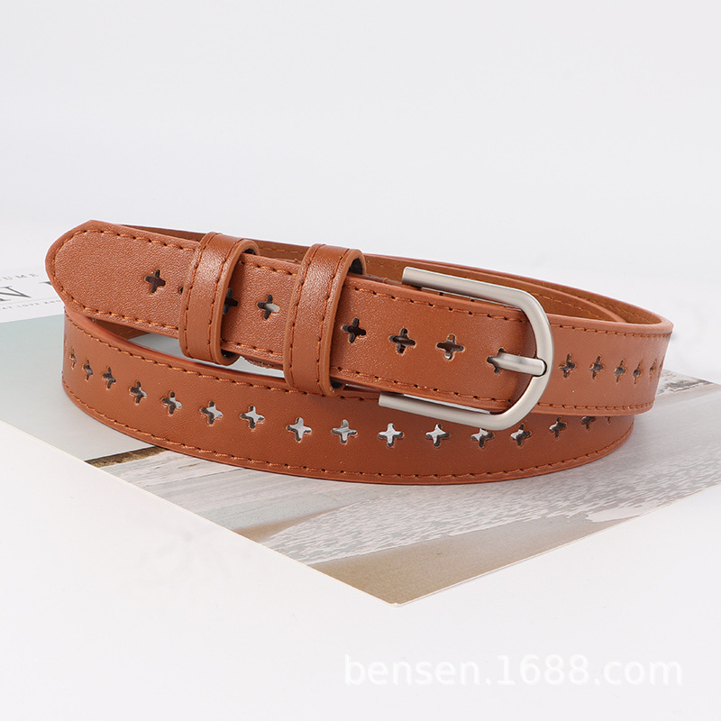 도매 복고풍 작은 벨트 여성의 간단한 전체 벨트 구멍 중공 여성의 전체 구멍이있는 한국식 학생 청바지스토어 가기
