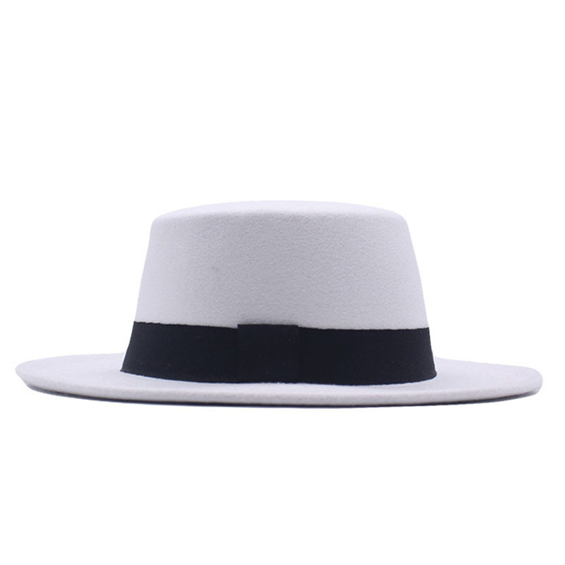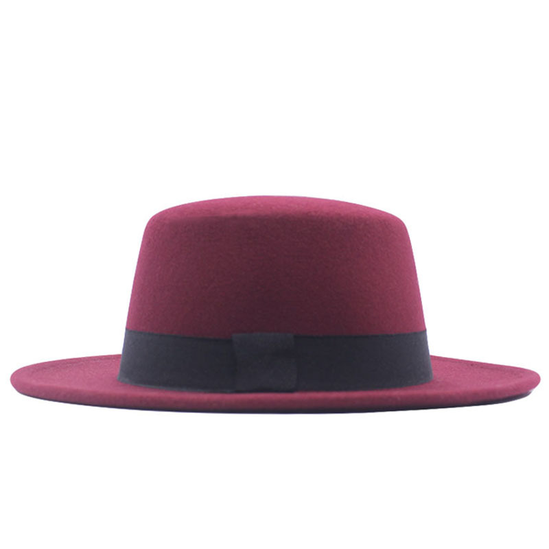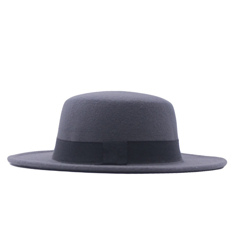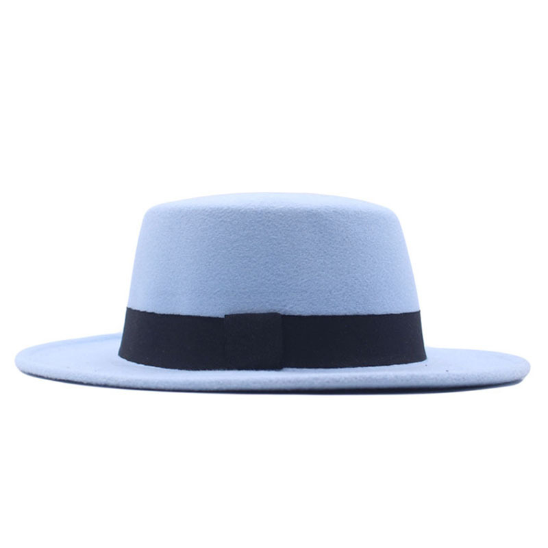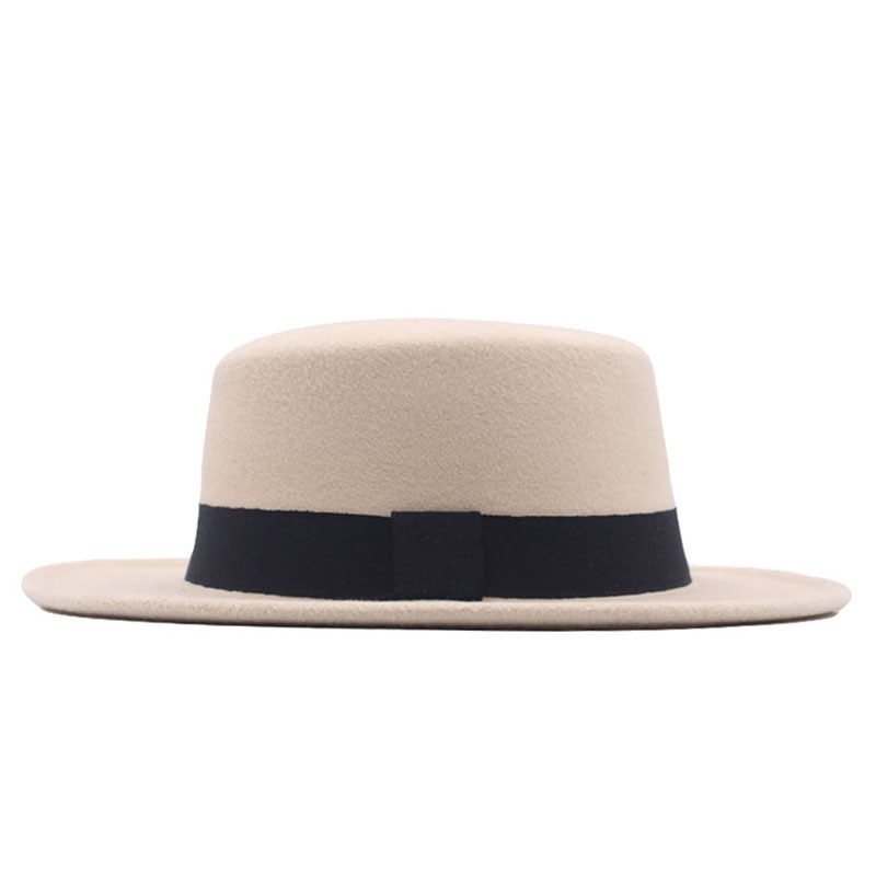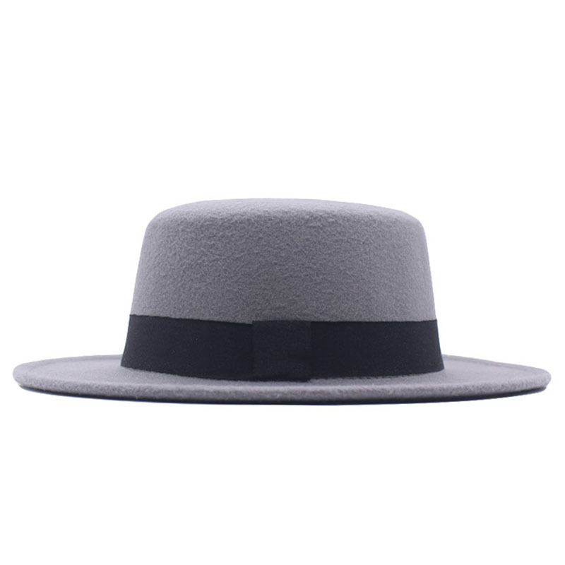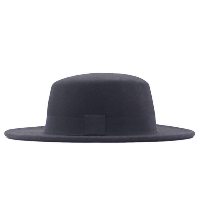 유럽과 미국의 대외 무역 가을과 겨울 복고풍 영국 플랫 탑 햇 블랙 리본 울 펠트 재즈 남성과 여성을위한 패션