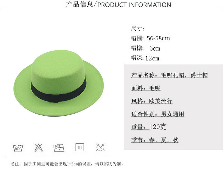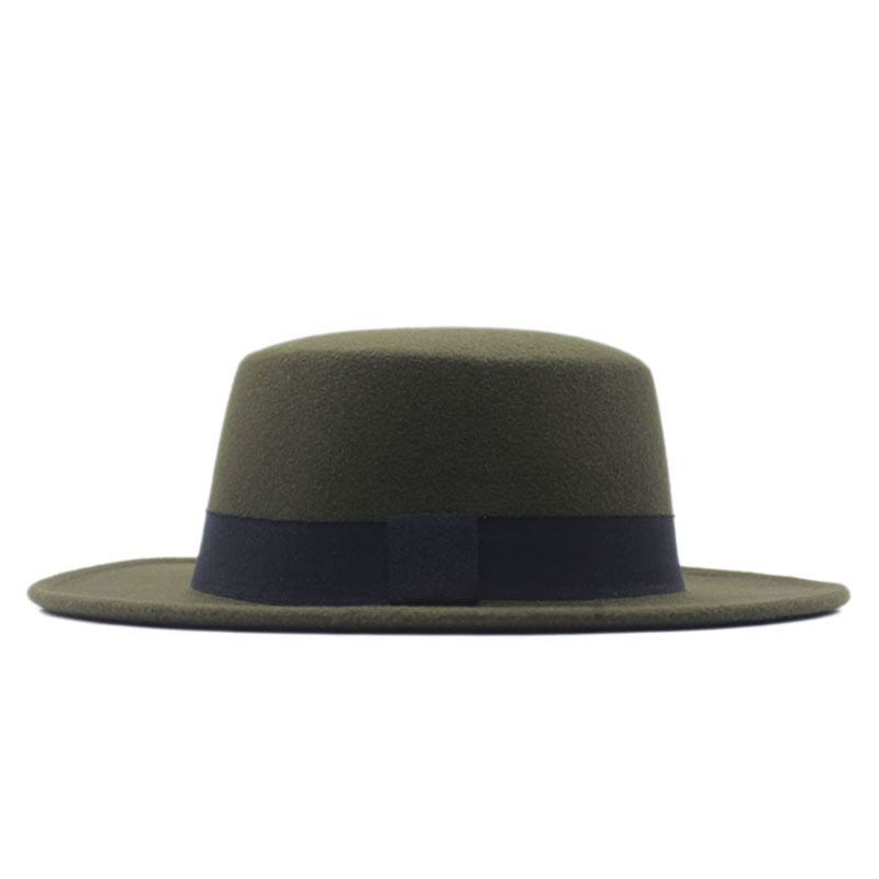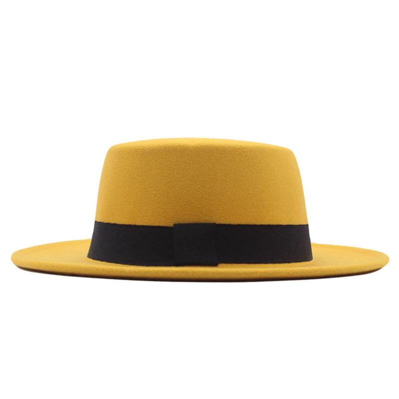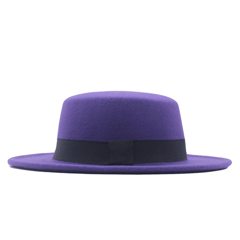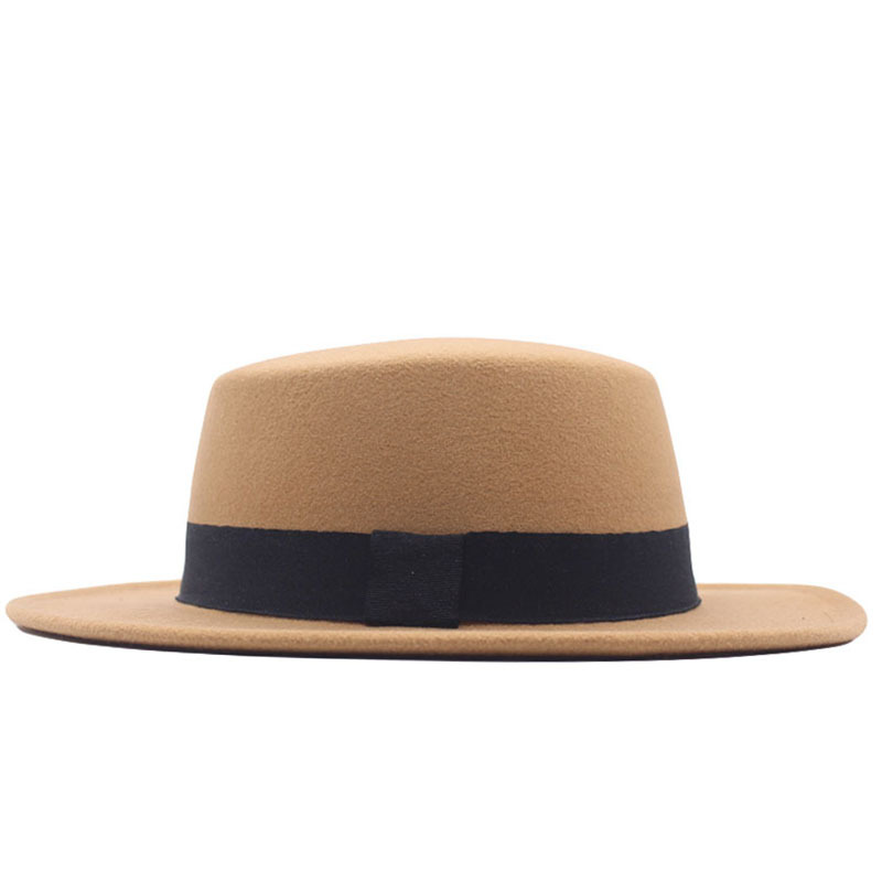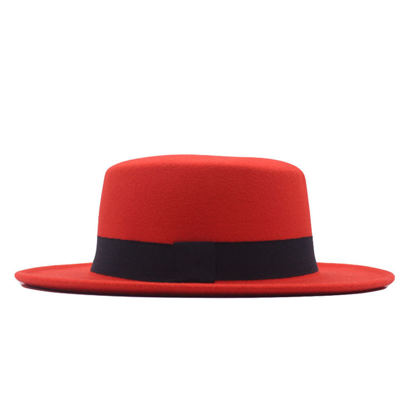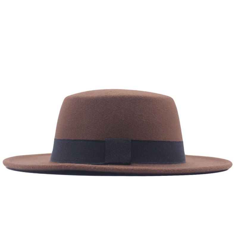 유럽과 미국의 대외 무역 가을과 겨울 복고풍 영국 플랫 탑 햇 블랙 리본 울 펠트 재즈 남성과 여성을위한 패션