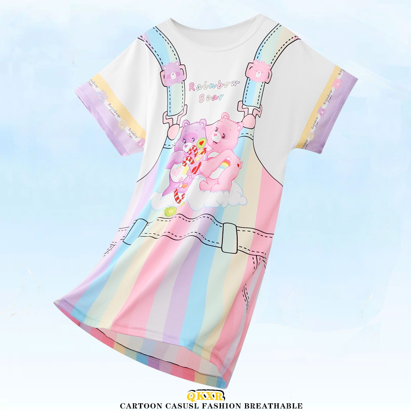 여름 여아 잠옷 반팔 아동 잠옷 여아 가정복 대형 어린이 얇은 에어컨 옷 아기의 원피스스토어 가기