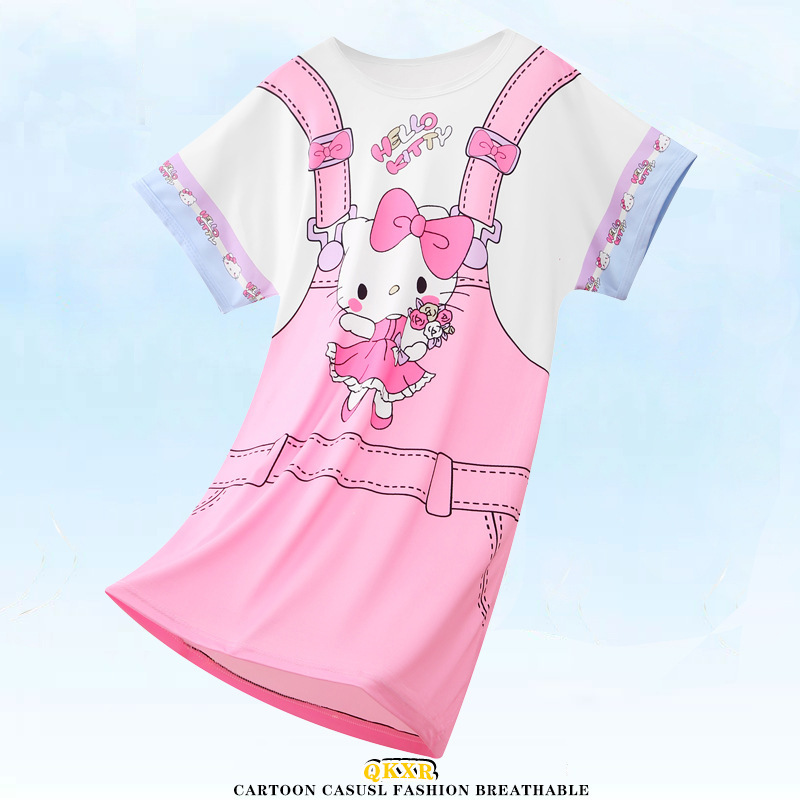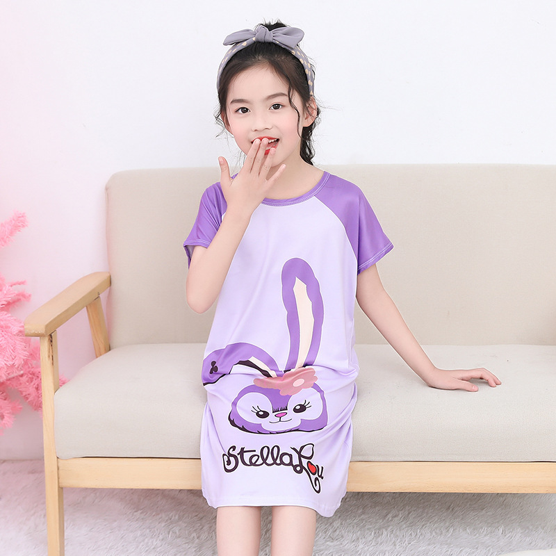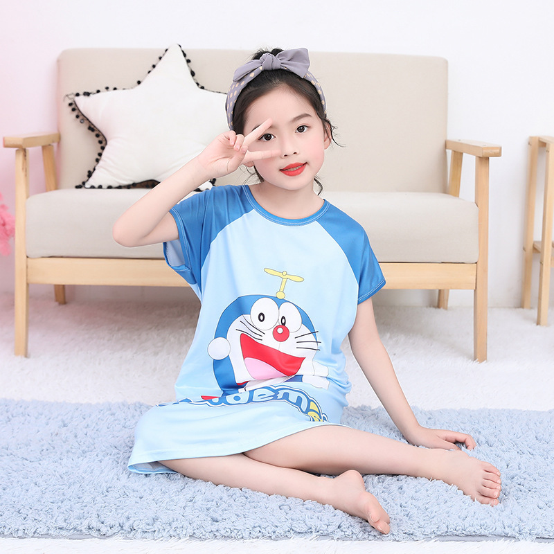여름 여아 잠옷 반팔 아동 잠옷 여아 가정복 대형 어린이 얇은 에어컨 옷 아기의 원피스