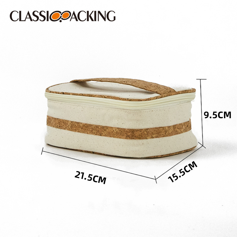유럽과 미국 스타일 면 캔버스 마무리 가방 원래 색상 우드 그레인 여행 세척 보관 가방 세트 환경 친화적 인 코르크 화장품 가방
