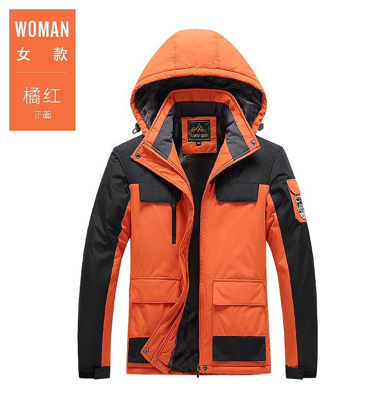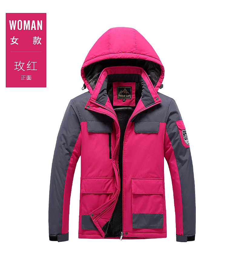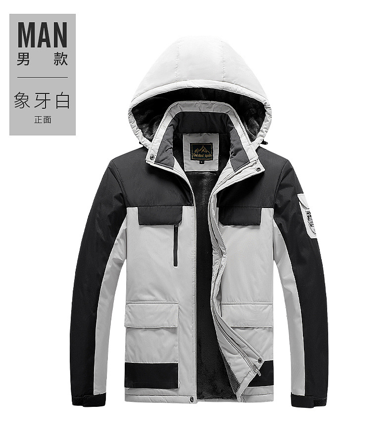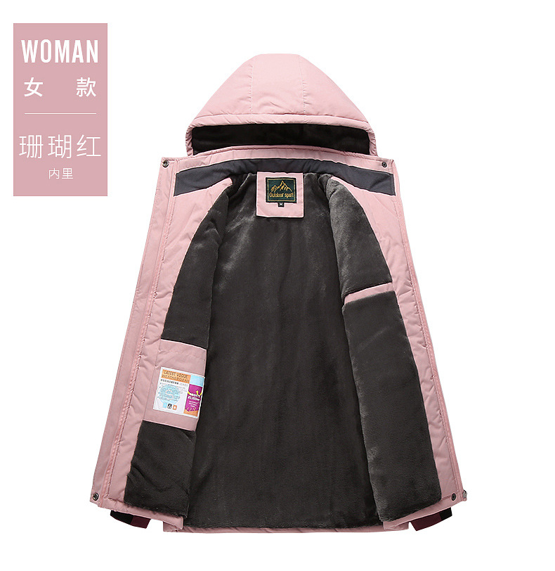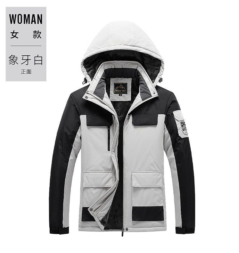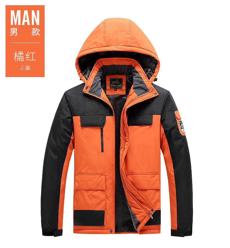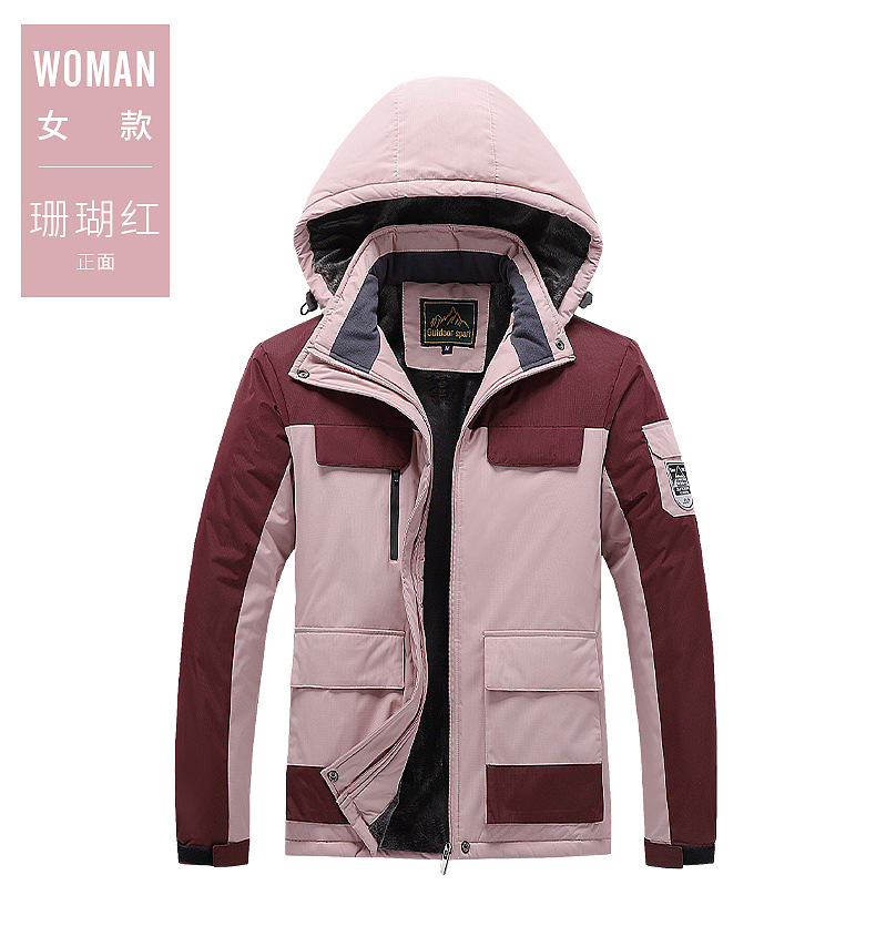 야외 충전 의류 남자의 겨울 두꺼운 면 패딩 의류 남자의 작업 코트 커플 스키 세트 기모 따뜻한 등산 세트