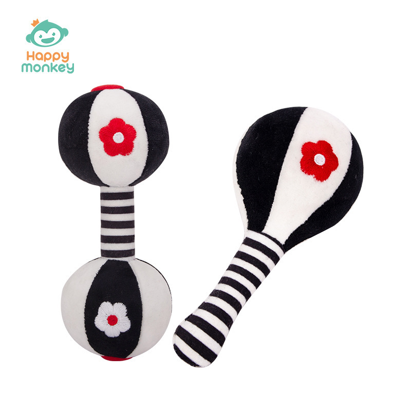 Happymonkey 신생아 쫓는 흑백 모래 망치 덤벨 베이비 비전 훈련 장난감 아기 핸드벨스토어 가기