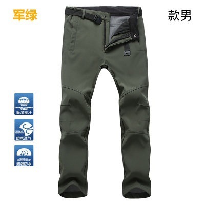 야외 소프트 쉘 러쉬 바지 남자의 방수 방풍 스키 바지 두꺼운 따뜻한 기모 바지 단색 야외 등산 바지 여성용스토어 가기