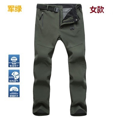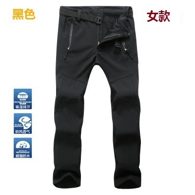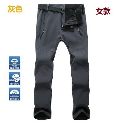 야외 소프트 쉘 러쉬 바지 남자의 방수 방풍 스키 바지 두꺼운 따뜻한 기모 바지 단색 야외 등산 바지 여성용