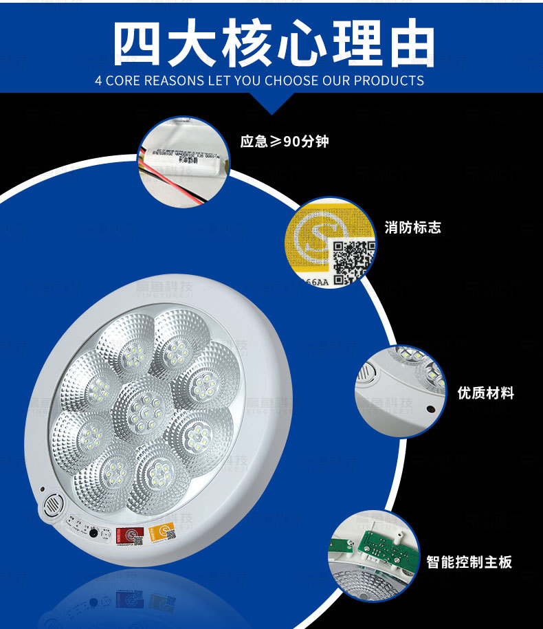 • 8W 3선 음성 제어 + 비상 천장 조명 [직경 220mm]