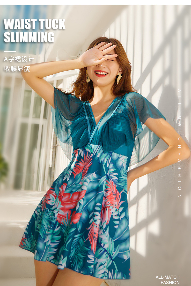 오케이 레이 원피스 수영복, 보수적 배 커버, 슬리밍, 새로운 한국식 대형 수영복, 리조트 스타일, 보수적 수영복스토어 가기