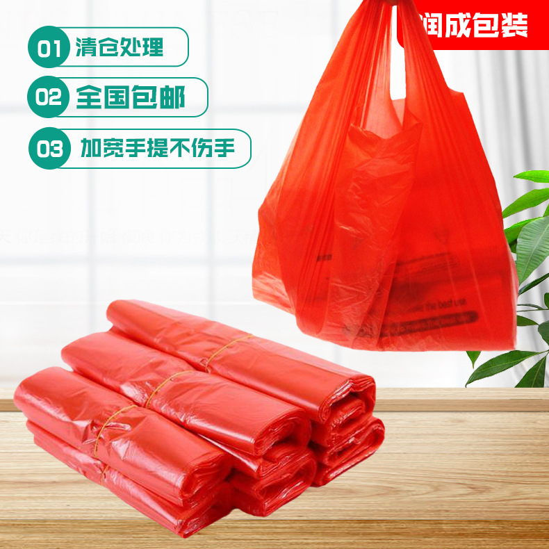 신선식품시장 슈퍼마켓 쇼핑을 위한 빨간색 비닐봉지 휴대용 두꺼운 편의 가방 빨간색 조끼 스타일 비닐봉지