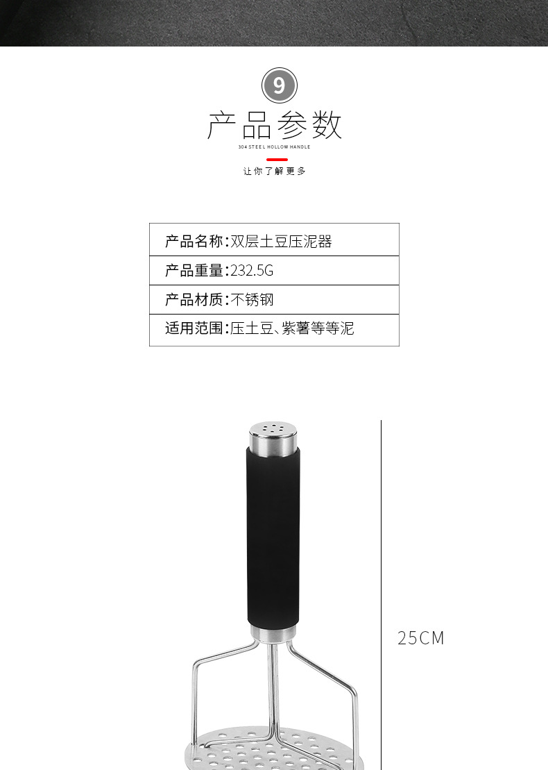 产品名称:不锈钢压薯器土豆泥捣泥器双层土豆泥捣碎器压泥压薯器厨房小工具