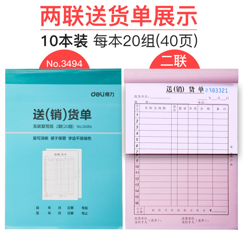 2 대 1 트리플 판매 목록 2 대 1 탄소 재 작성 창고 배달 문서 배송 바우처에 따른 델리 배송 문서스토어 가기